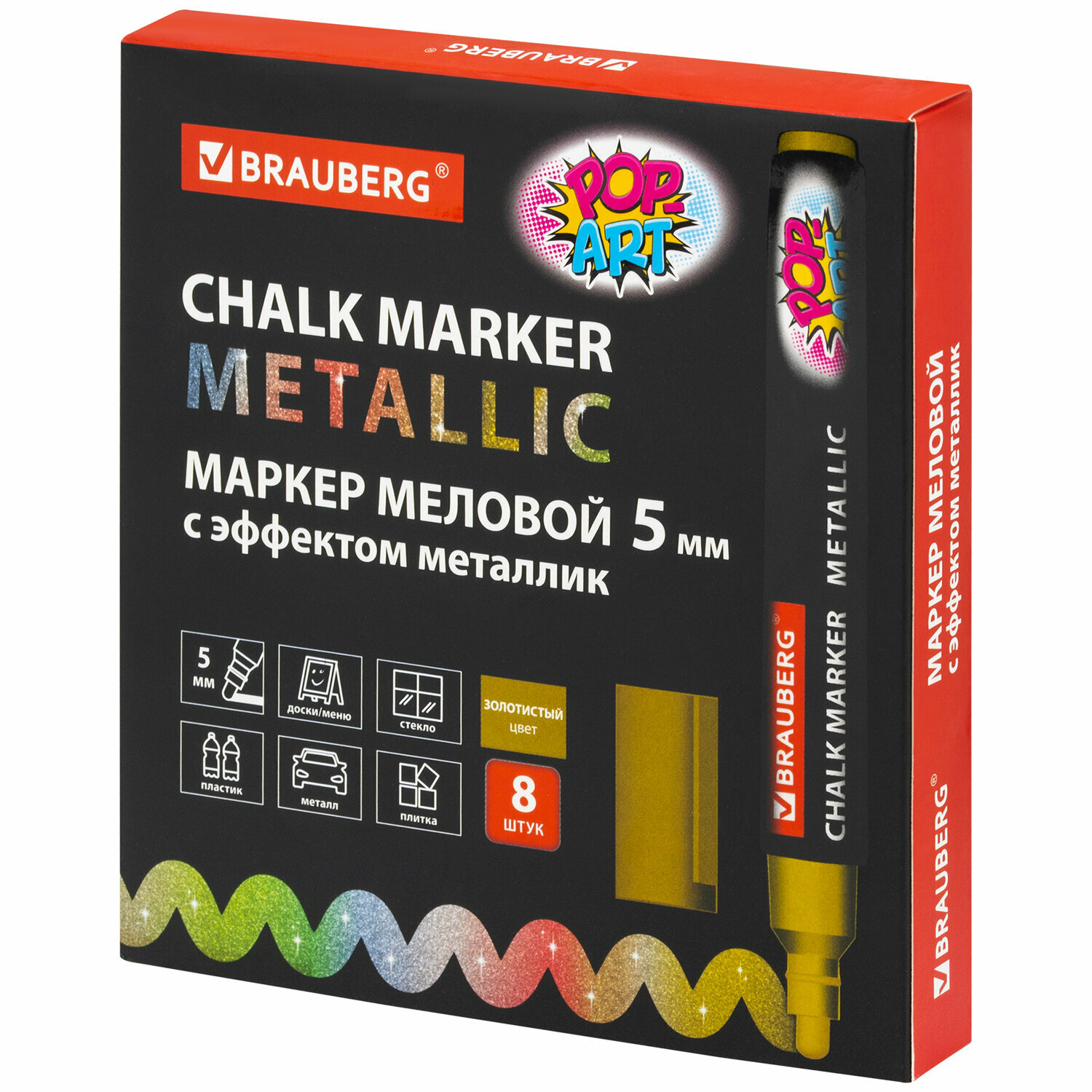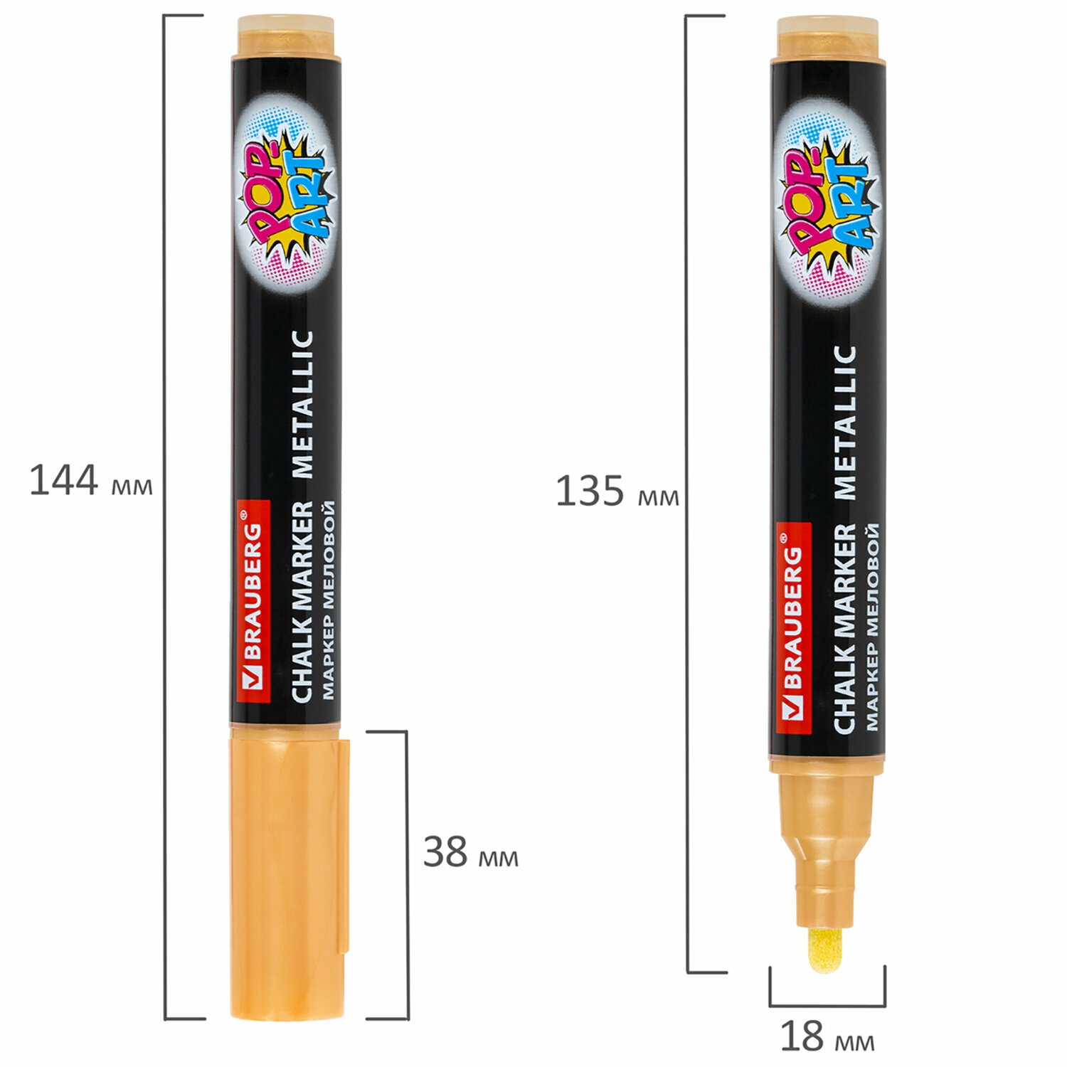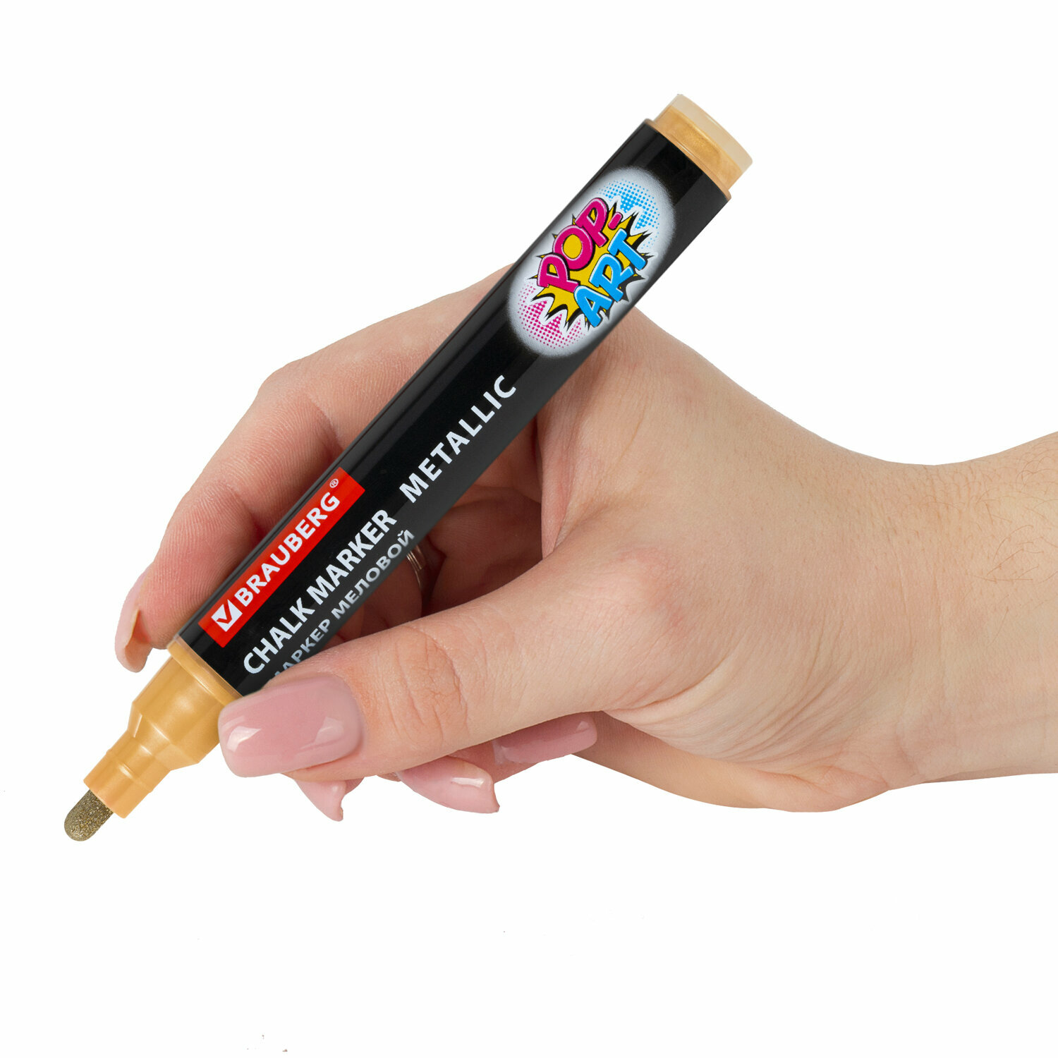 СохранитьМаркер (фломастер) меловой стираемый для доски Pop-art Золотой, 5 мм, Влагостираемый, для гладких поверхностей, Brauberg, 152485 интересное: