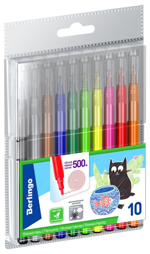 Фломастеры Berlingo "Жил-был кот", 10 цв., смываемые интересное:
