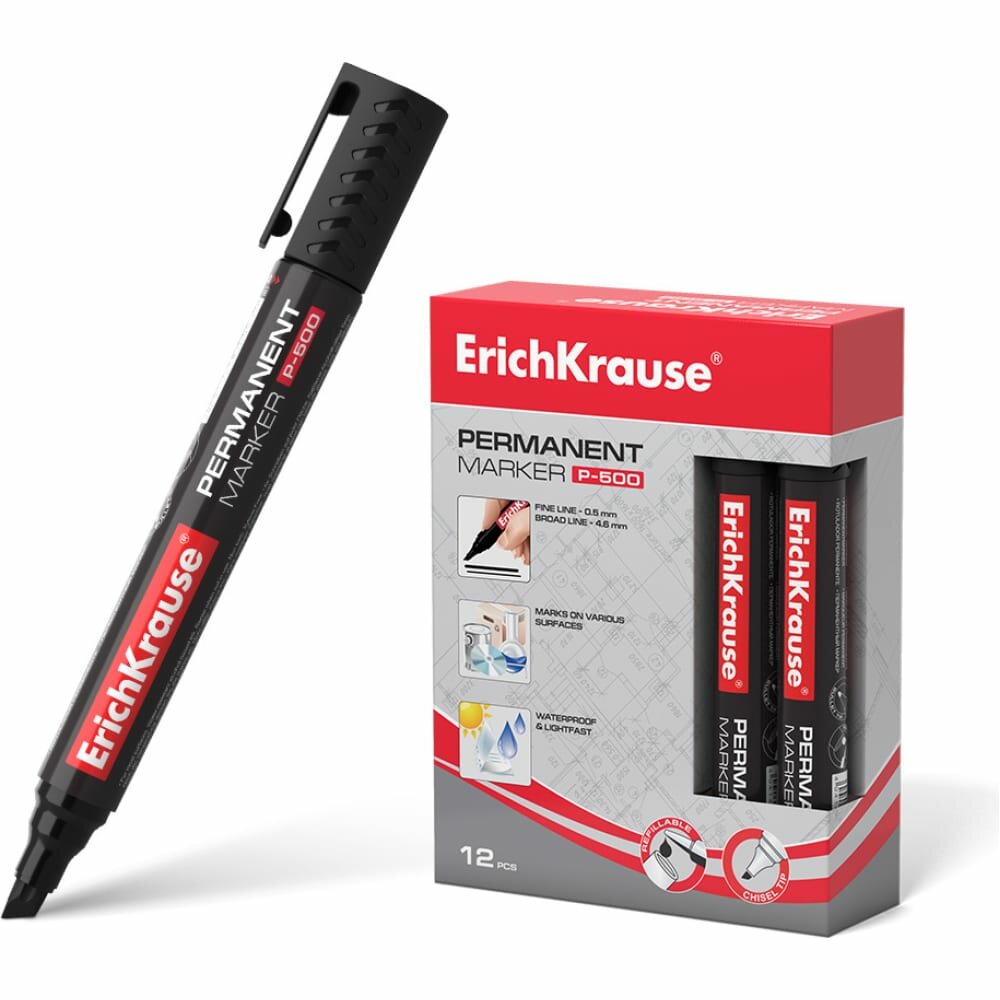Купить Маркер перманентный 4.6-0.5мм ErichKrause "P-500" скошенный, чёрный 30990 1050514