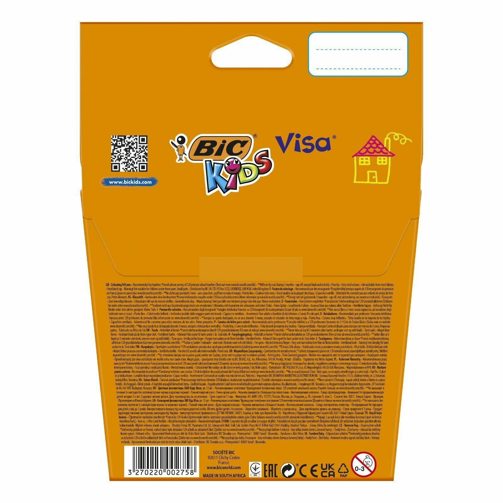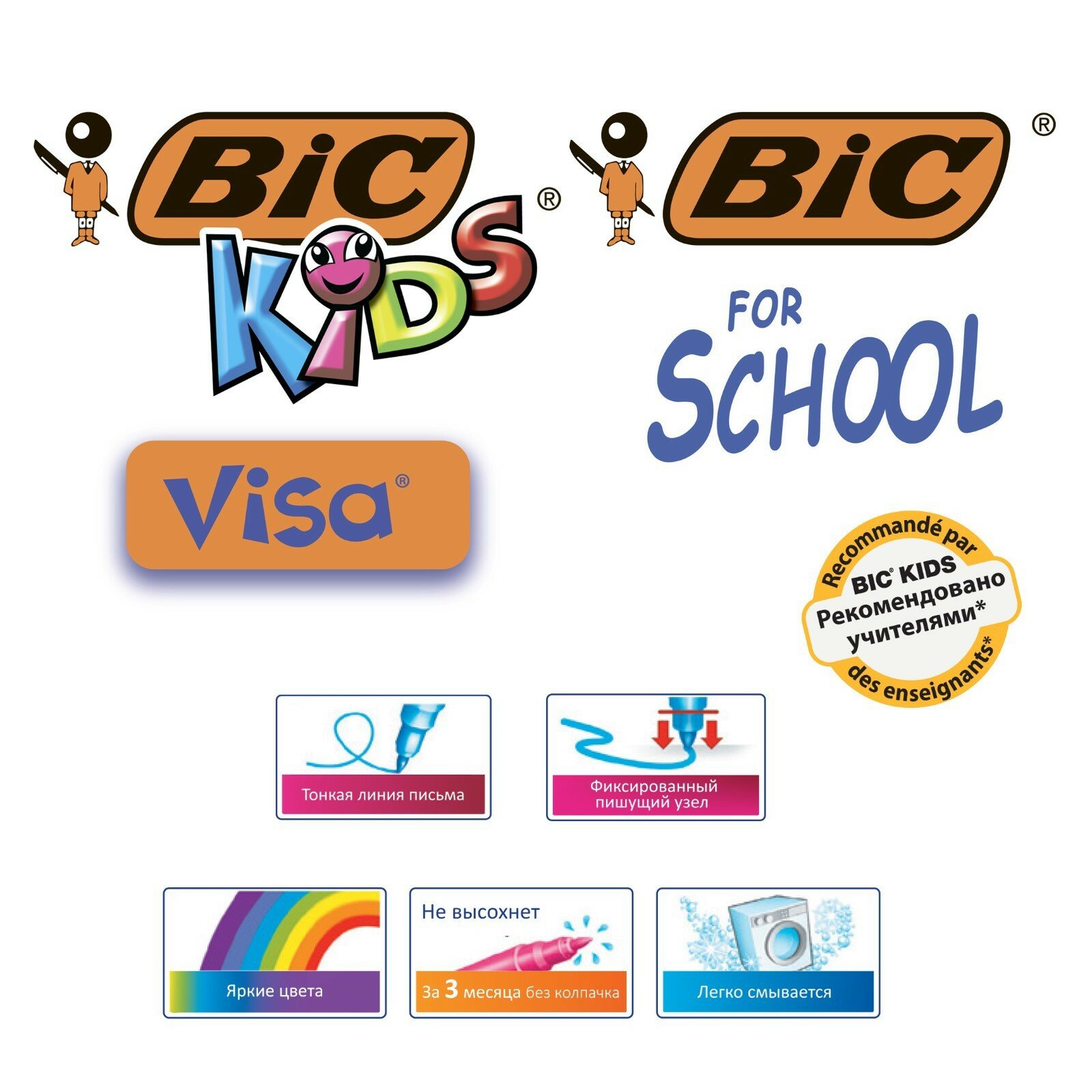 Фломастеры BIC "Kids Visa", 12 цветов, суперсмываемые, вентилируемый колпачок, европодвес, 889695, 888695