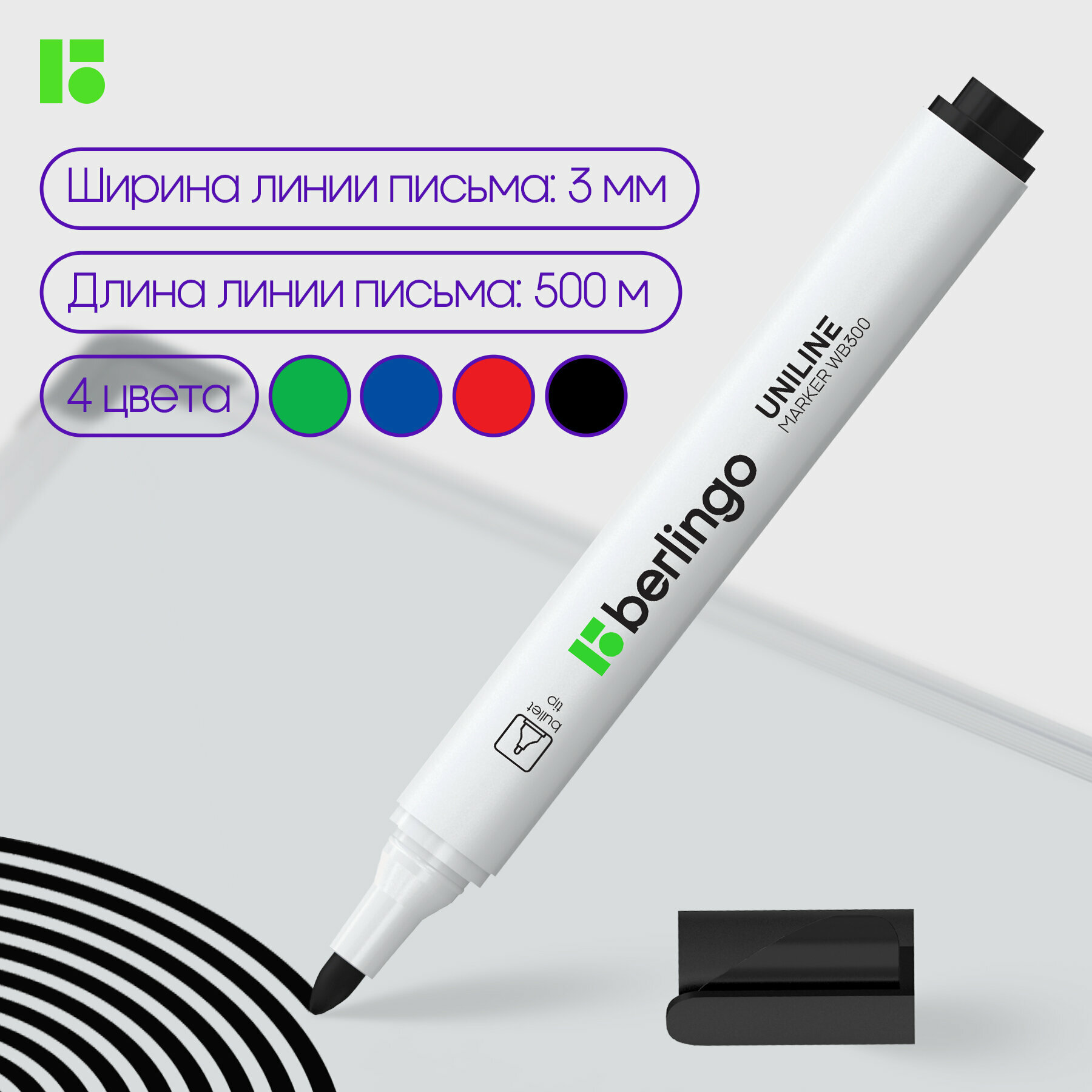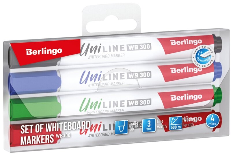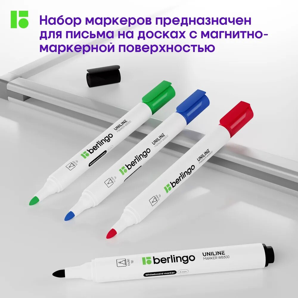 Купить Маркеры стираемые Berlingo Uniline WB300 для магнитной белой доски, флипчарта и планера, 3 мм, набор 4 цвета