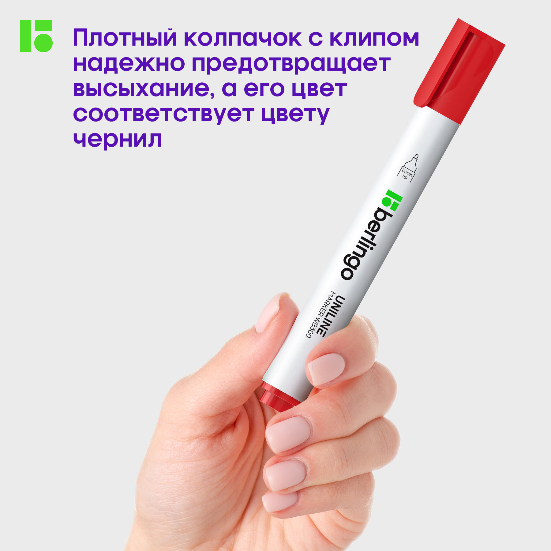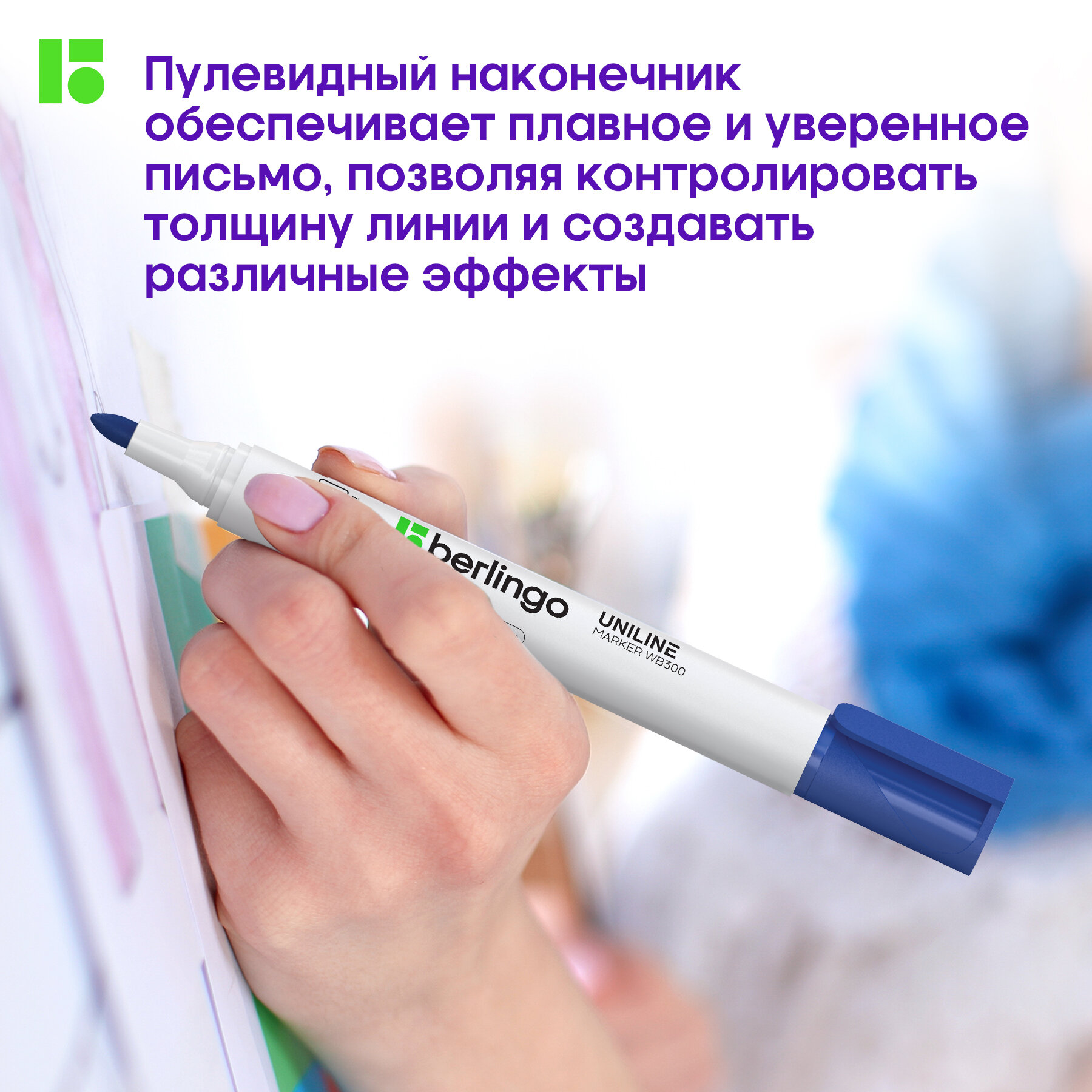Маркер для белых досок Berlingo "Uniline WB300", зеленый, пулевидный, 3мм, 319375