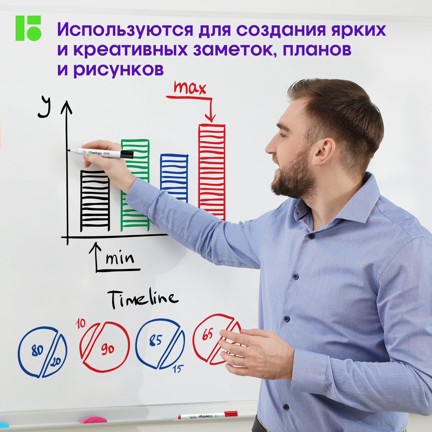 СохранитьМаркеры стираемые Berlingo Uniline WB300 для магнитной белой доски, флипчарта и планера, 3 мм, набор 4 цвета интересное: