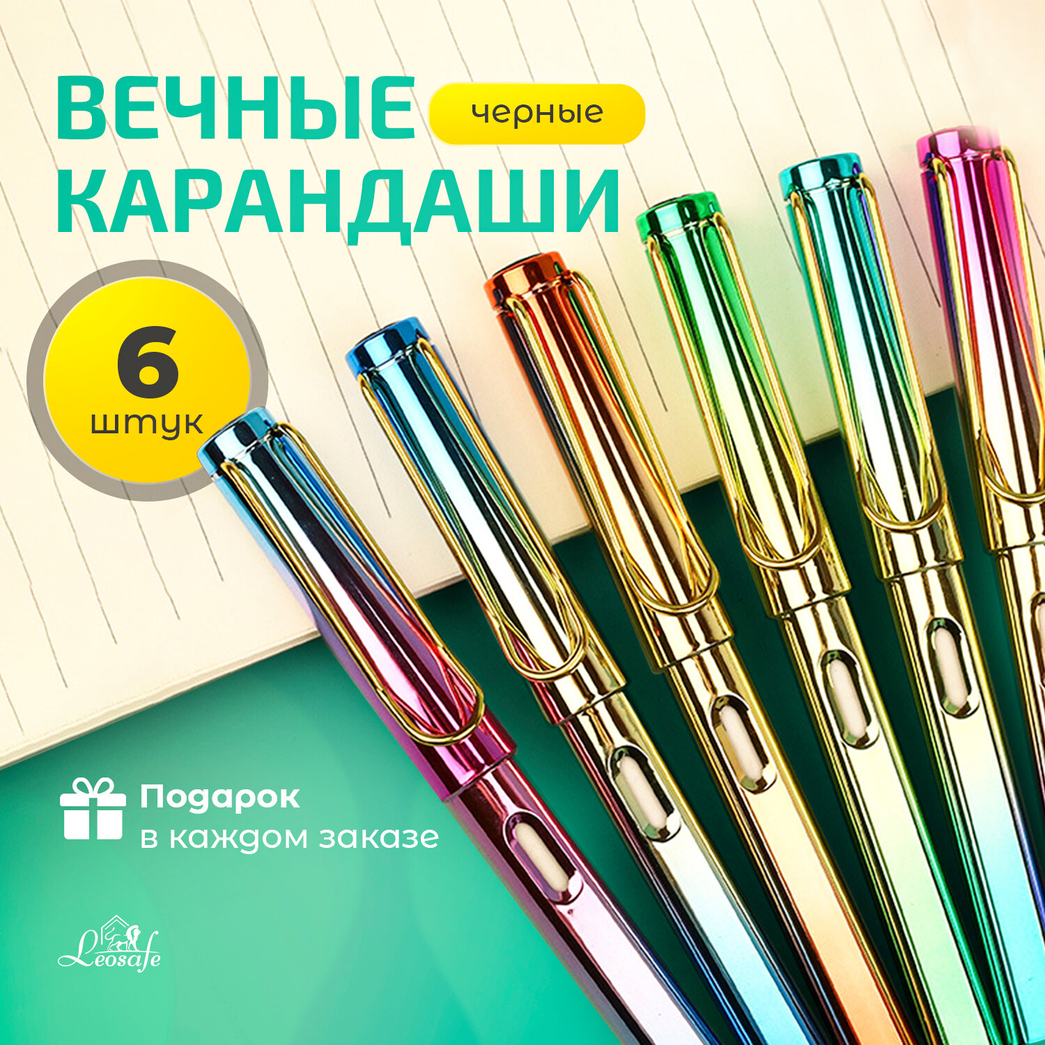 Набор вечных карандашей LeoSafe, простой грифель, для правшей и левшей, 6 штук