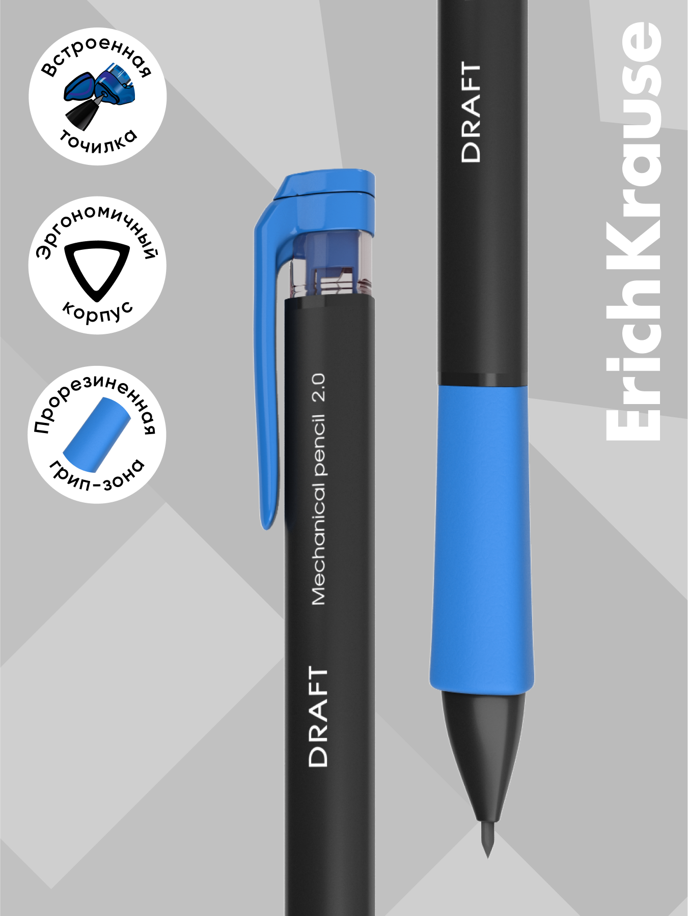 Карандаш механический ErichKrause® Draft в наборе с 5 грифелями 2.0 мм, НВ (в блистере по 1 шт.) интересное: