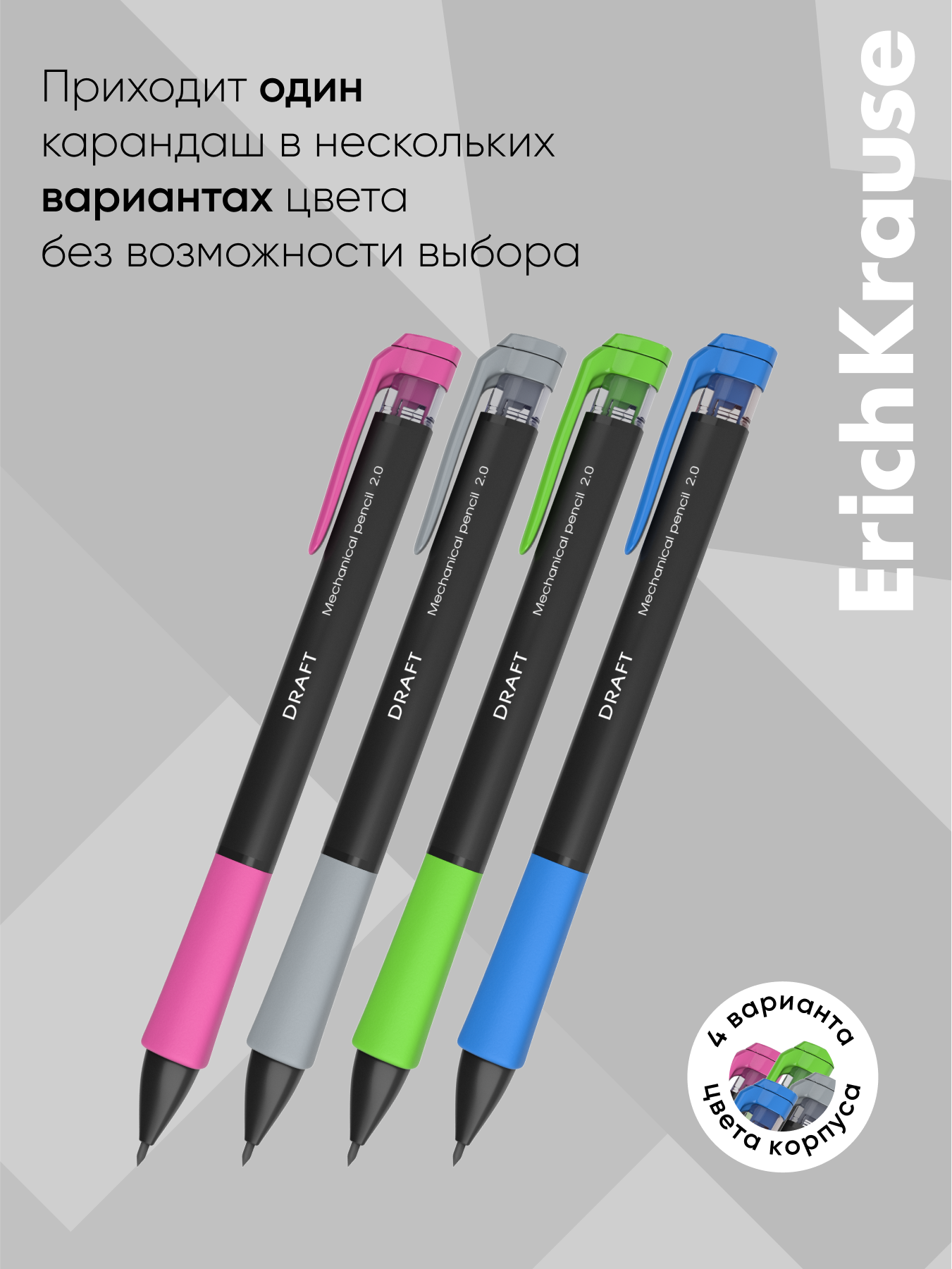 Карандаш механический 2.0мм "Draft" корпус пластик ассорти ERICH KRAUSE 28300 100516