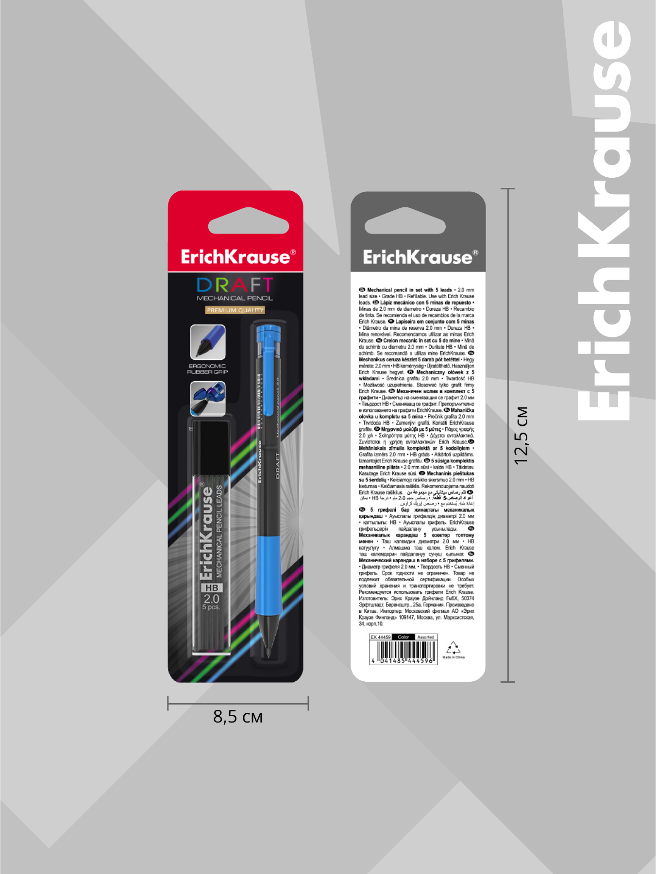 Карандаш механический 2.0 мм, HB, Erich Krause DRAFT, трёхгранный, резиновый упор, точилка, микс