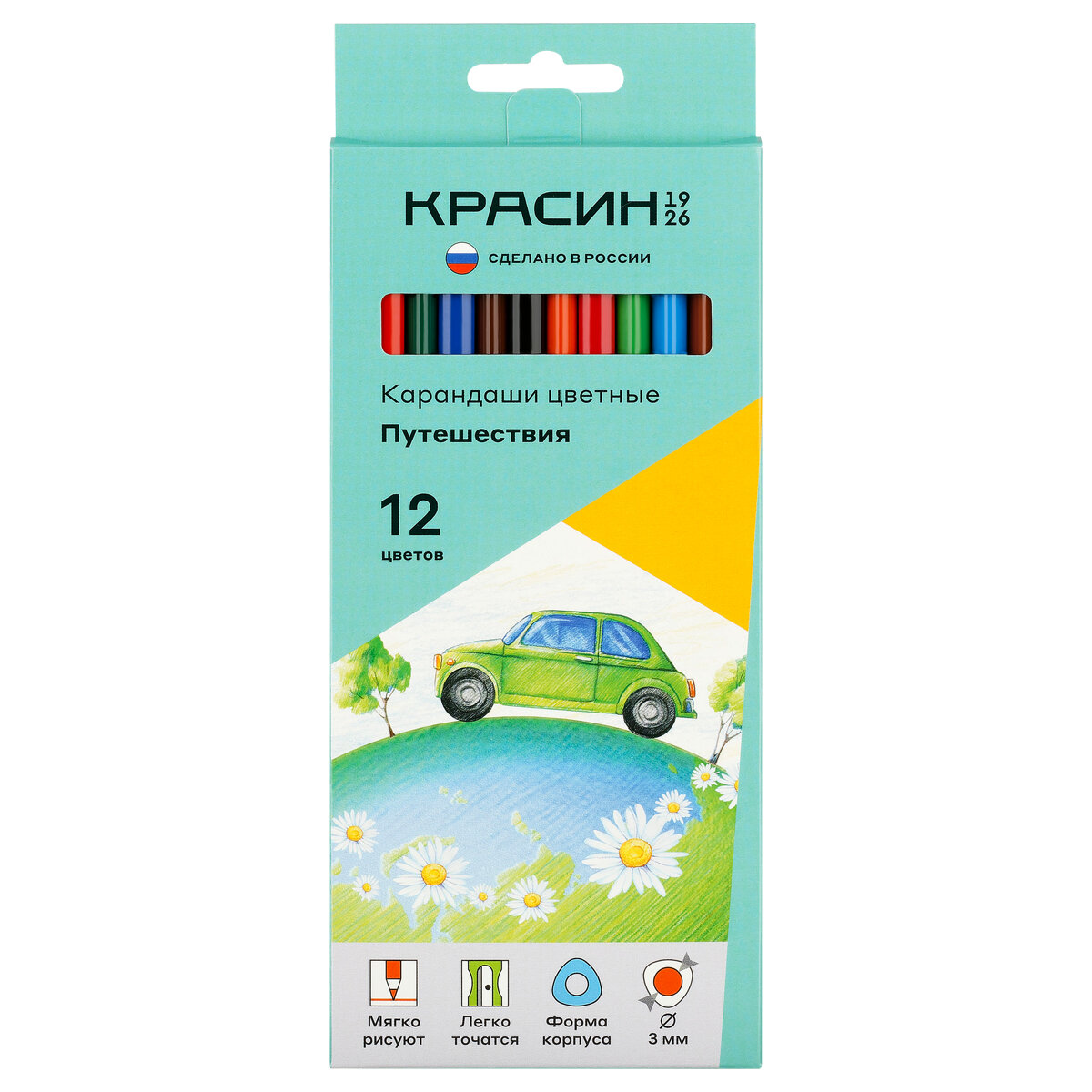 Карандаши цветные Красин "Путешествия", 12 цветов, трехгранные, заточенные, европодвес (КР-1208) интересное: