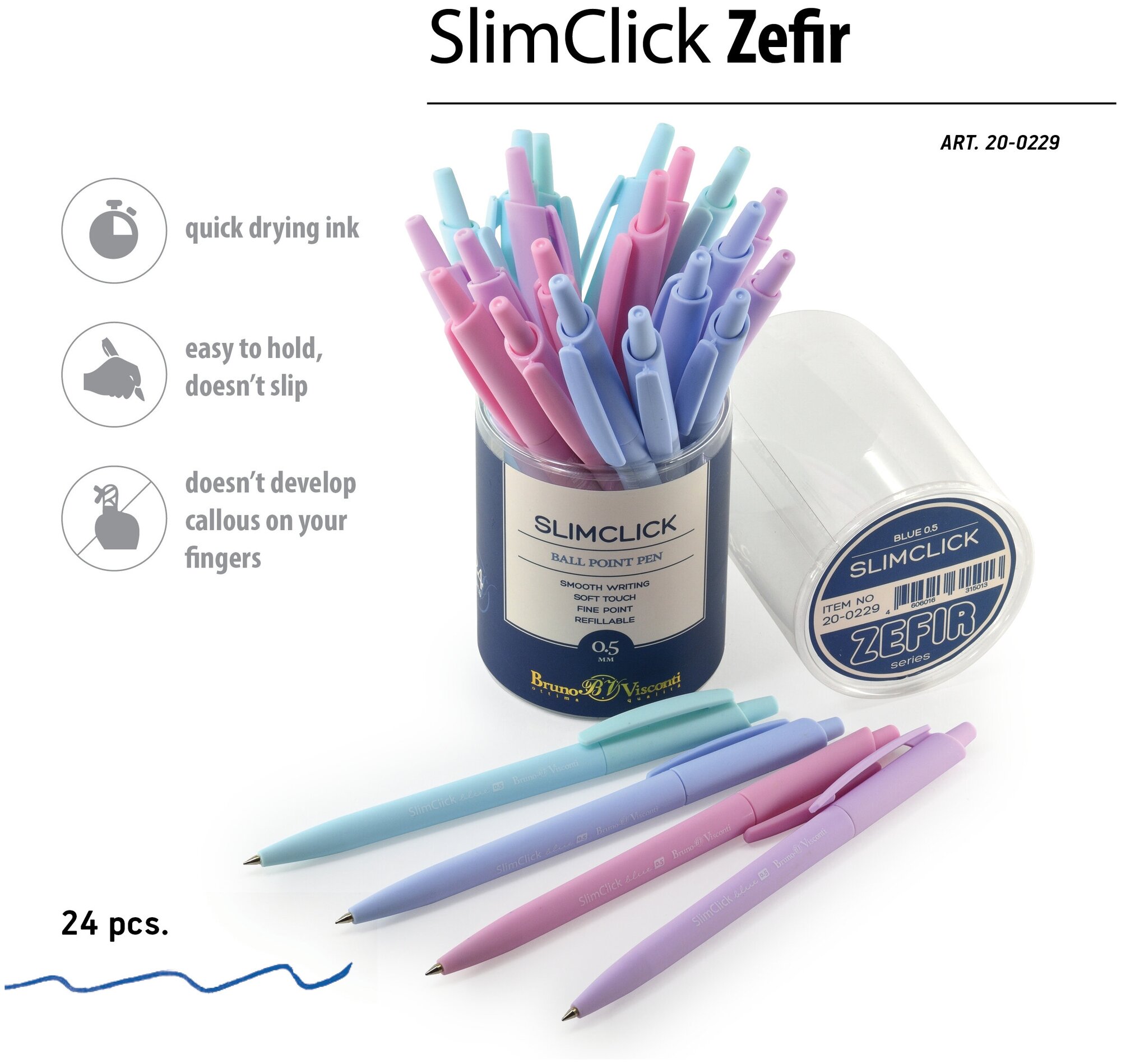 Купить Ручкa BrunoVisconti, шариковая автоматическая, 0.5 мм, синяя, SlimClick. ZEFIR, Арт. 20-0229