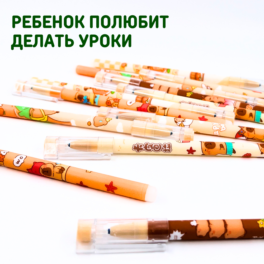 СохранитьНабор гелевых ручек пиши стирай со стираемыми чернилами для детей и взрослых 12 шт, Капибара интересное: