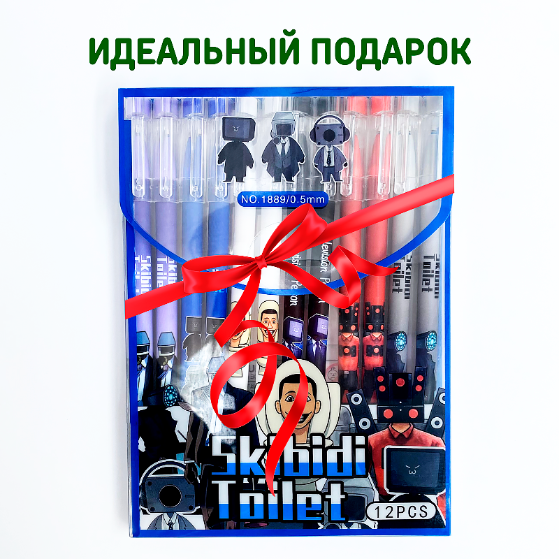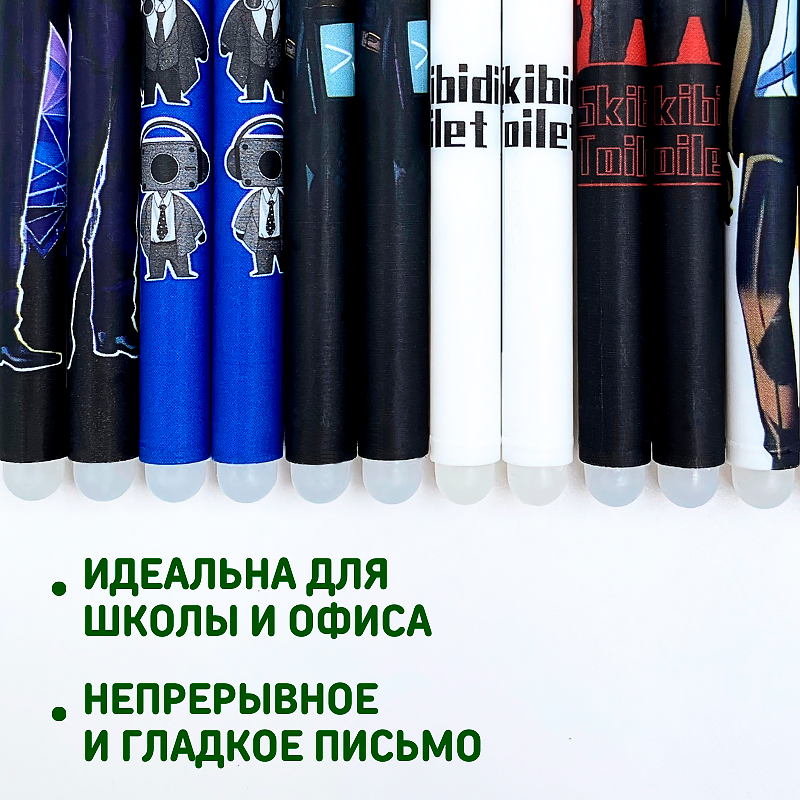 Купить Набор ручек пиши-стирай "Скибиди Туалет" 12 шт./ Ручки гелевые синие со стираемыми чернилами