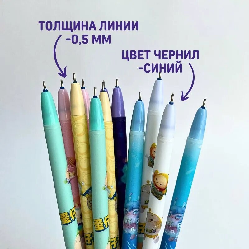 Купить Набор ручек пиши-стирай "Яичная вечеринка" 12 шт./ Ручки гелевые синие со стираемыми чернилами