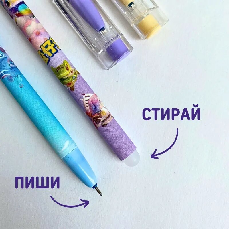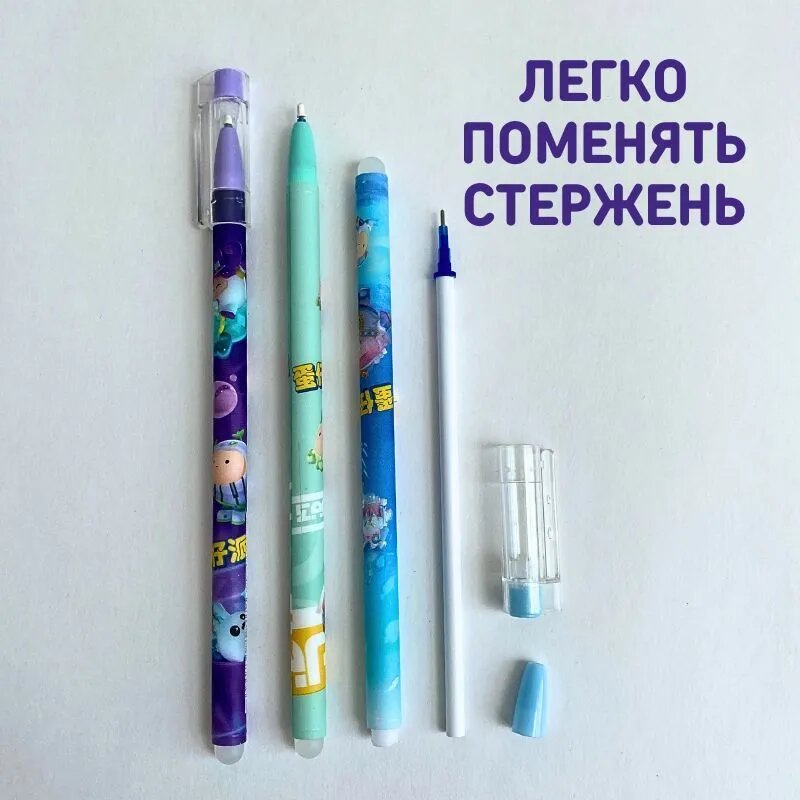 Набор ручек пиши-стирай "Зверьки" 12 шт./ Ручки гелевые синие со стираемыми чернилами