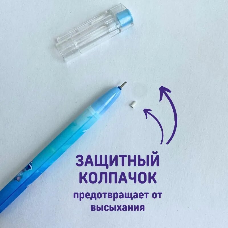 Набор ручек пиши-стирай "Котики" 12 шт./ Ручки гелевые синие со стираемыми чернилами