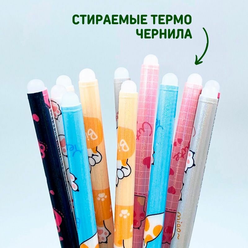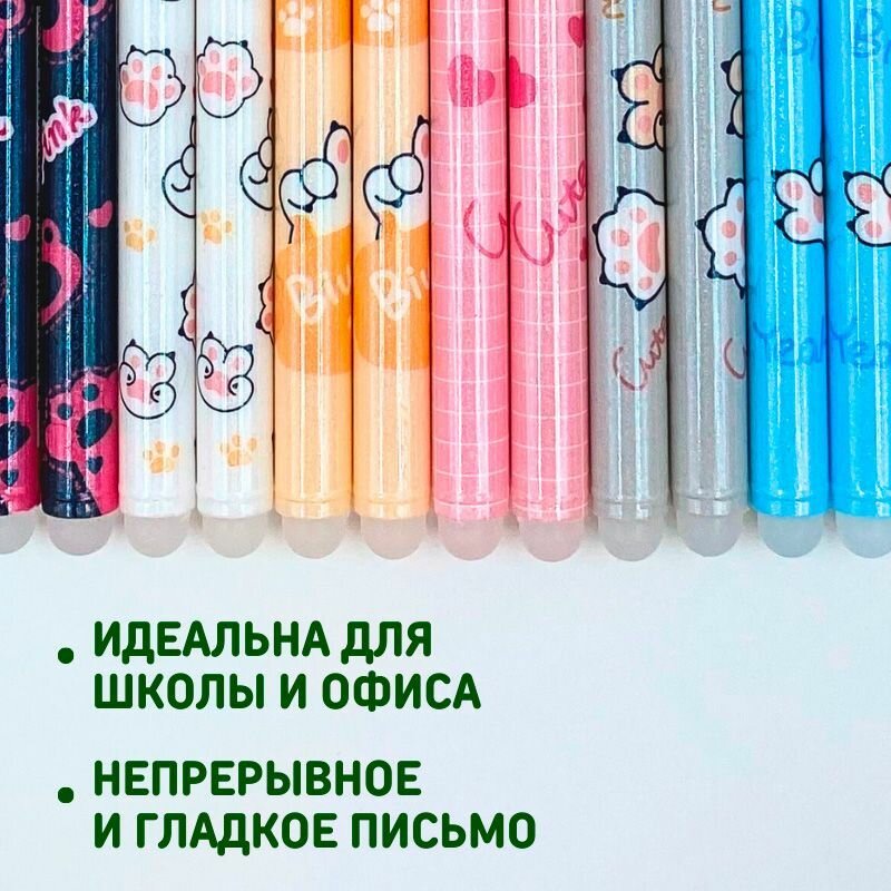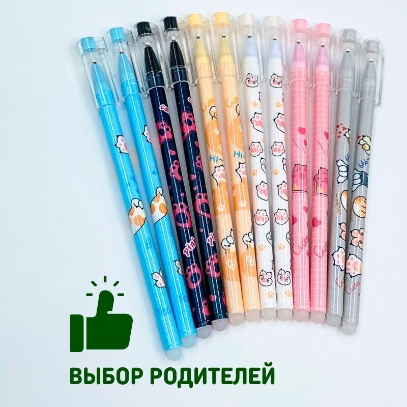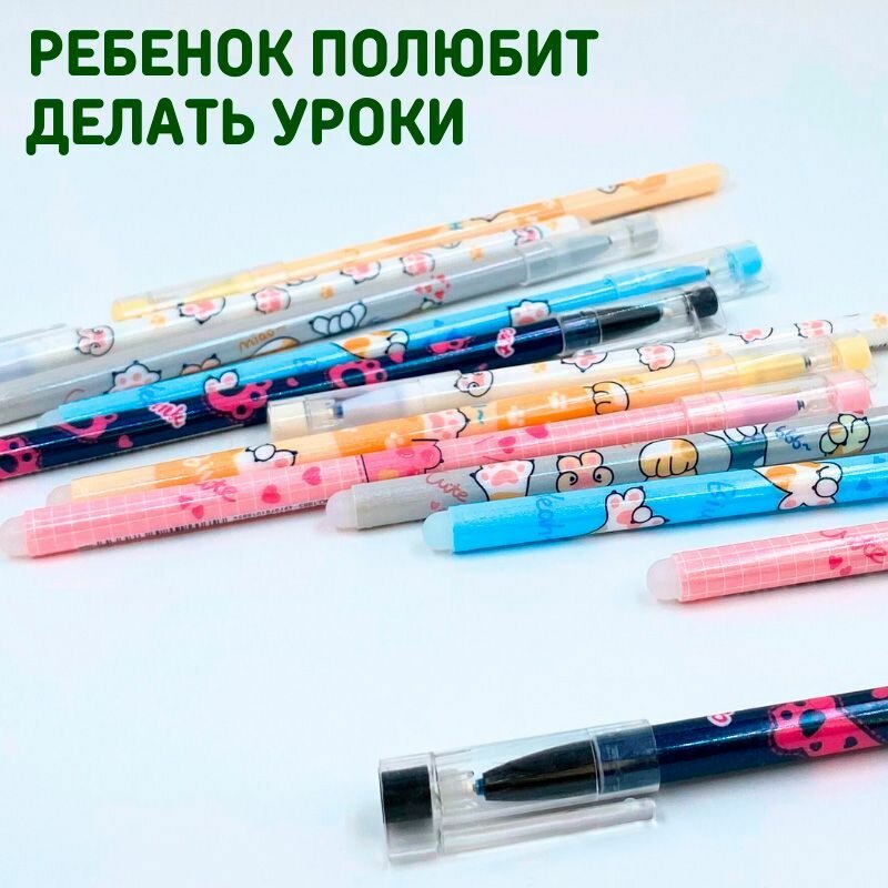 Набор гелевых ручек пиши стирай со стираемыми чернилами для детей и взрослых 12 шт, Котики