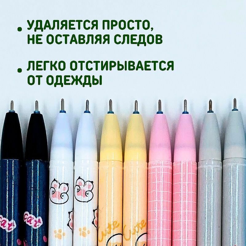 Набор ручек пиши-стирай "Котики" 12 шт./ Ручки гелевые синие со стираемыми чернилами
