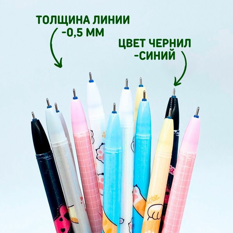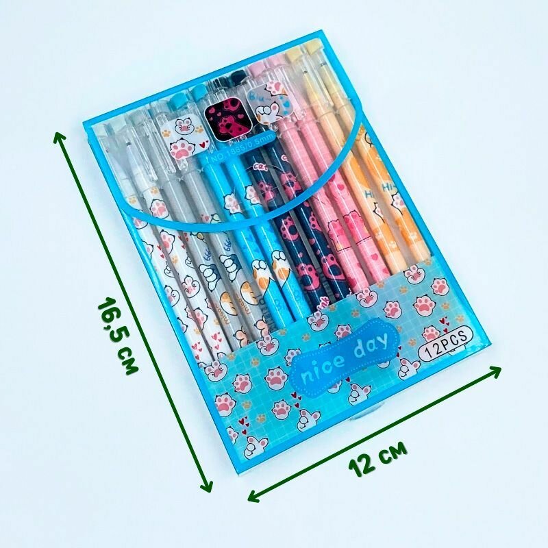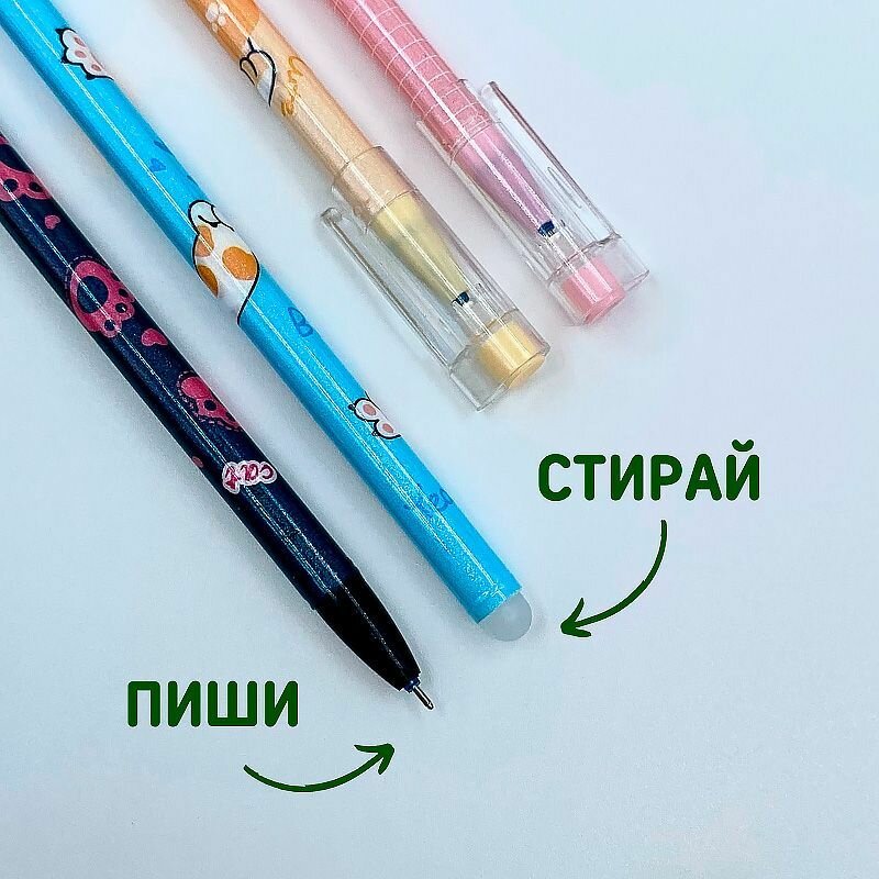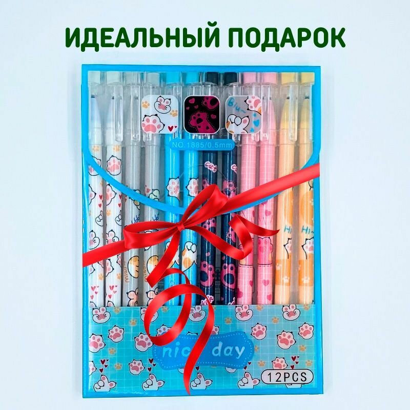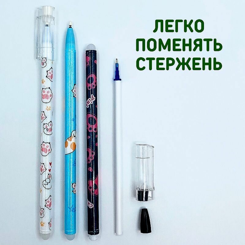 Купить Набор ручек пиши-стирай "Кошачьи лапки" 12 шт./ Ручки гелевые синие со стираемыми чернилами