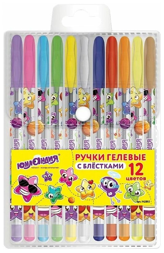 Ручки гелевые юнландия, набор 12 шт., ассорти блестки, корпус с печатью, 0,7мм, линия 0,5мм интересное: