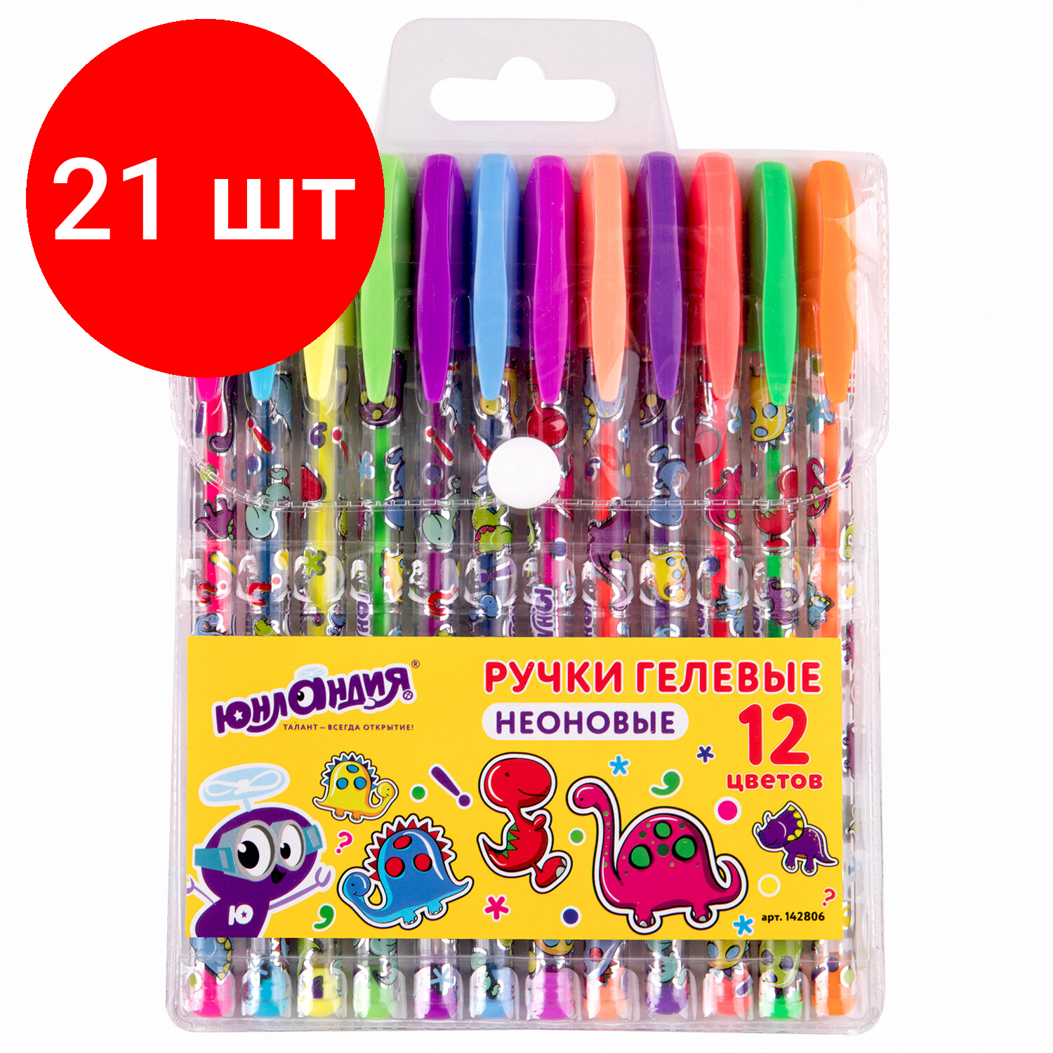 Купить Комплект 21 шт, Ручки гелевые юнландия, набор 12 цветов, неон, корпус с печатью, узел 0.7 мм, линия письма 0.5 мм, 142806