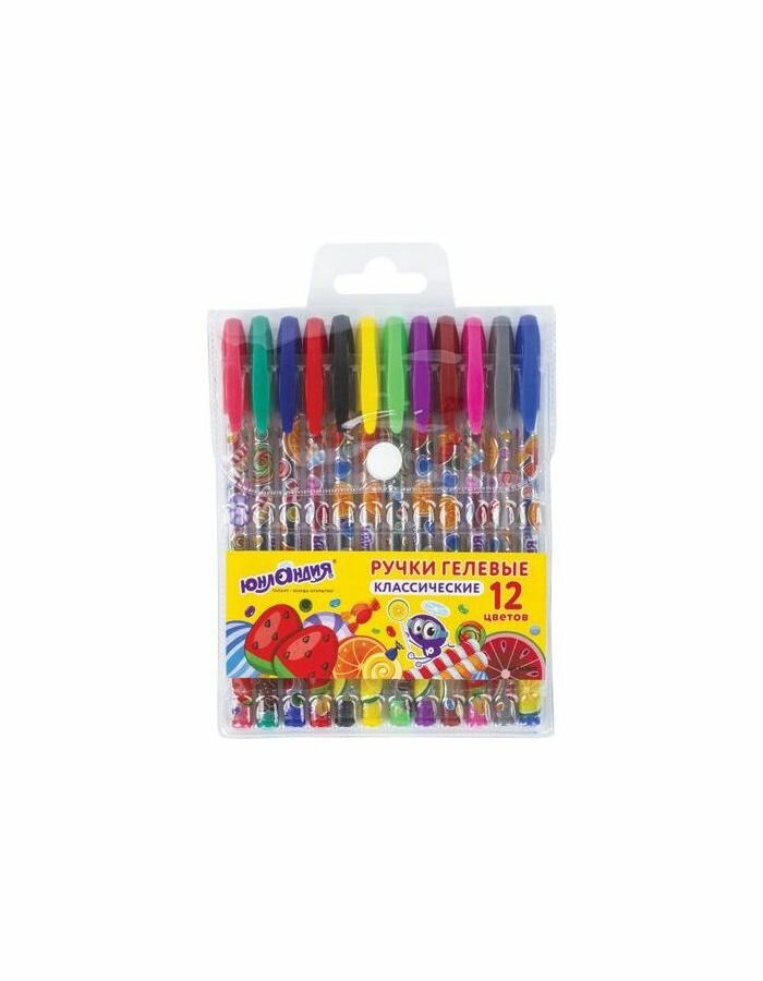 Ручки гелевые юнландия, набор 12 шт., ассорти, корпус с печатью, узел 0,5 мм, линия письма 0,35 мм, GP124