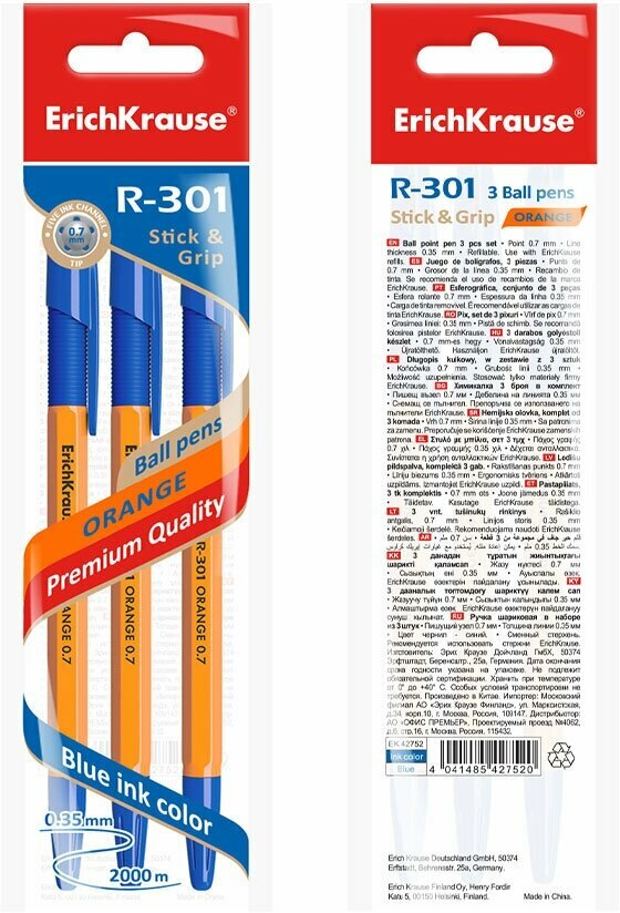 Ниже Вы можете прочитать отзывы на Ручка шариковая ErichKrause® R-301 Orange Stick&Grip 0.7, цвет чернил синий (в пакете по 3 шт.), ознакомится с подробными характеристиками, посмотреть интересные обзоры и фотографии на Ручка шариковая ErichKrause® R-301 Orange Stick&Grip 0.7, цвет чернил синий (в пакете по 3 шт.).