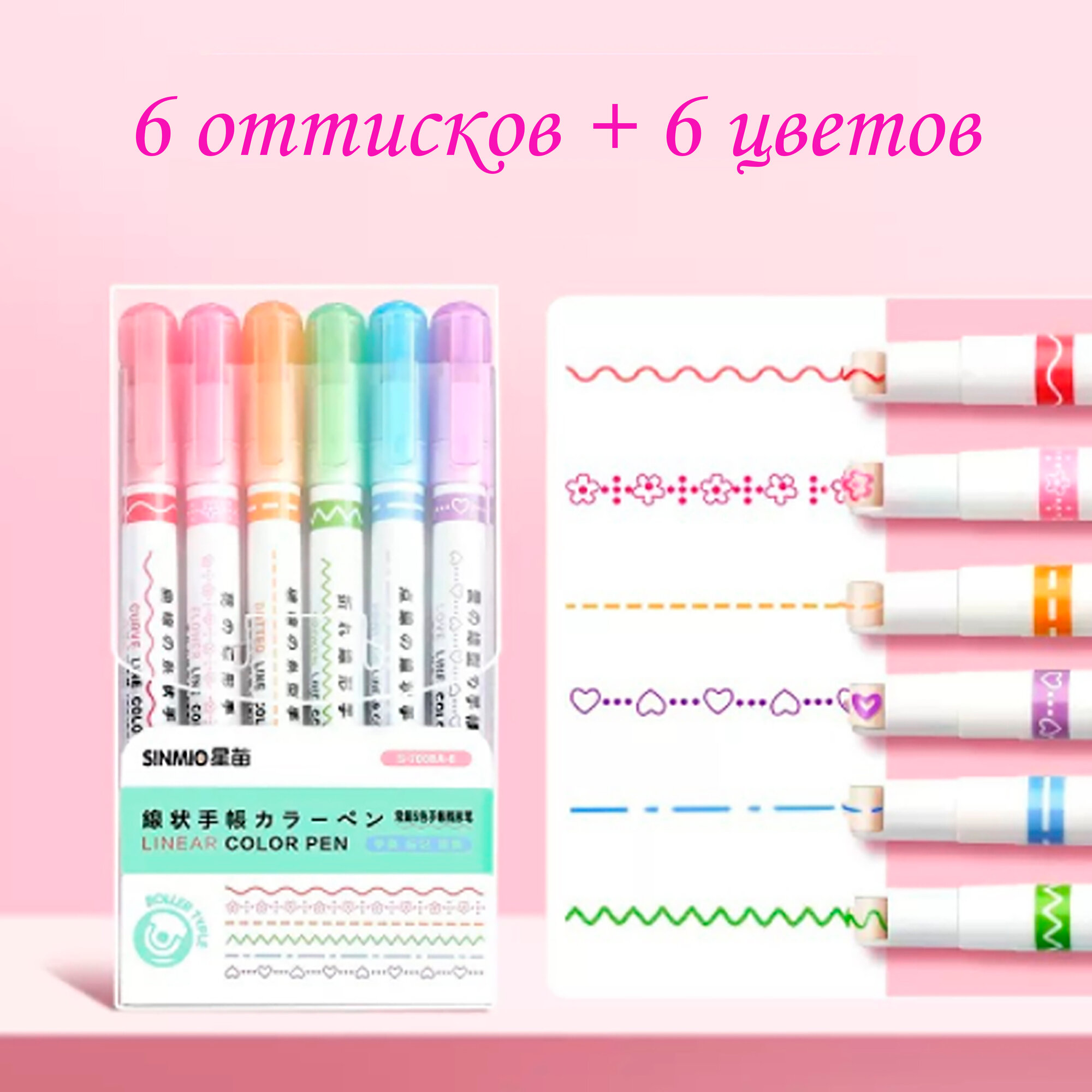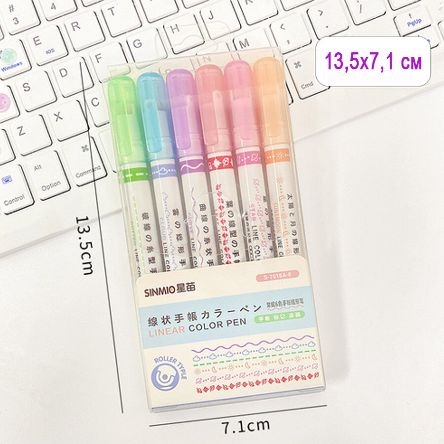 Фигурные линеры-ручки, цветные фломастеры , маркеры для скетчинга и выделения текста, набор 6 цветов интересное: