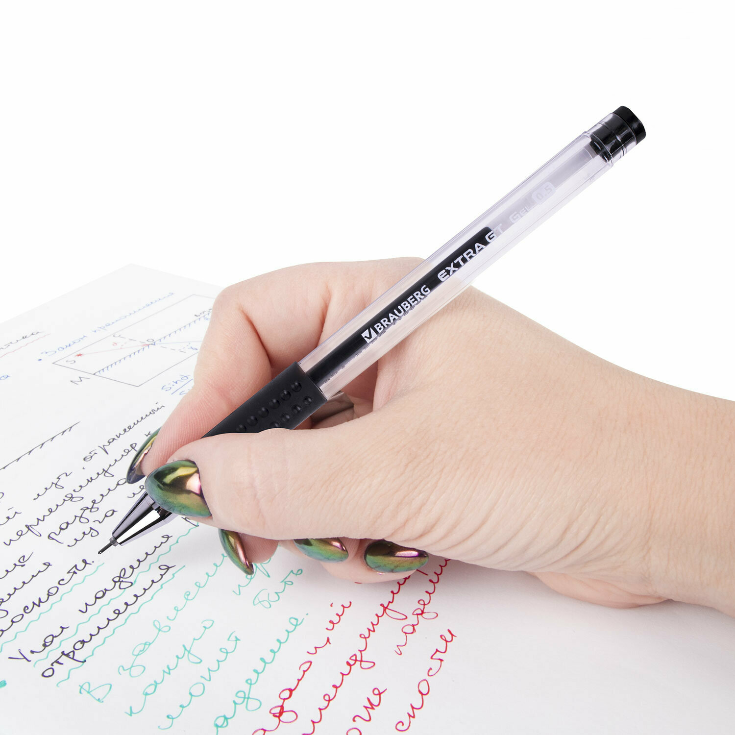 Гелевые ручки черные набор 12 штук, для ОГЭ, ЕГЭ и школы тонкие, узел 0,5 мм, линия 0,35 мм, Brauberg Extra GT Needle, 881012 интересное: