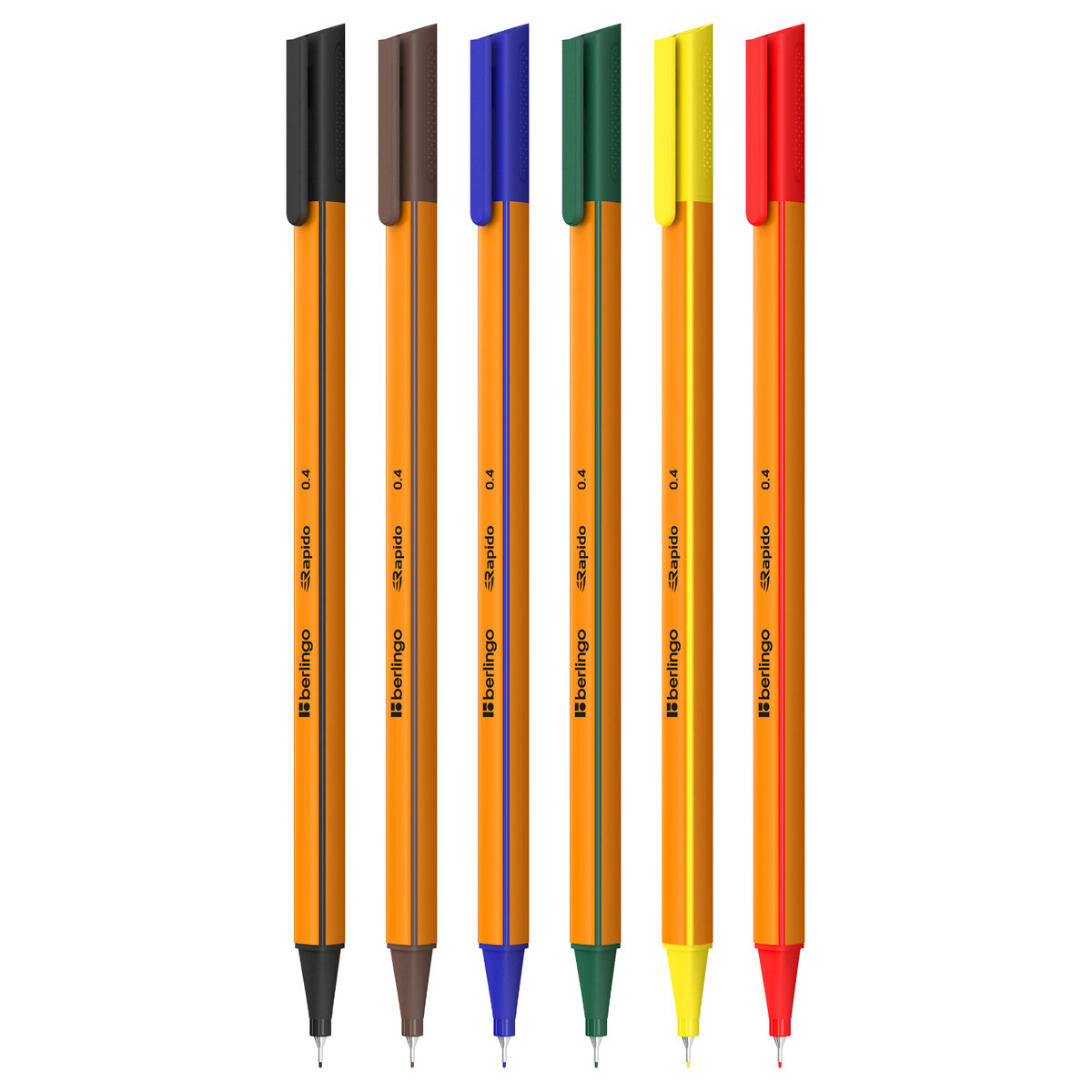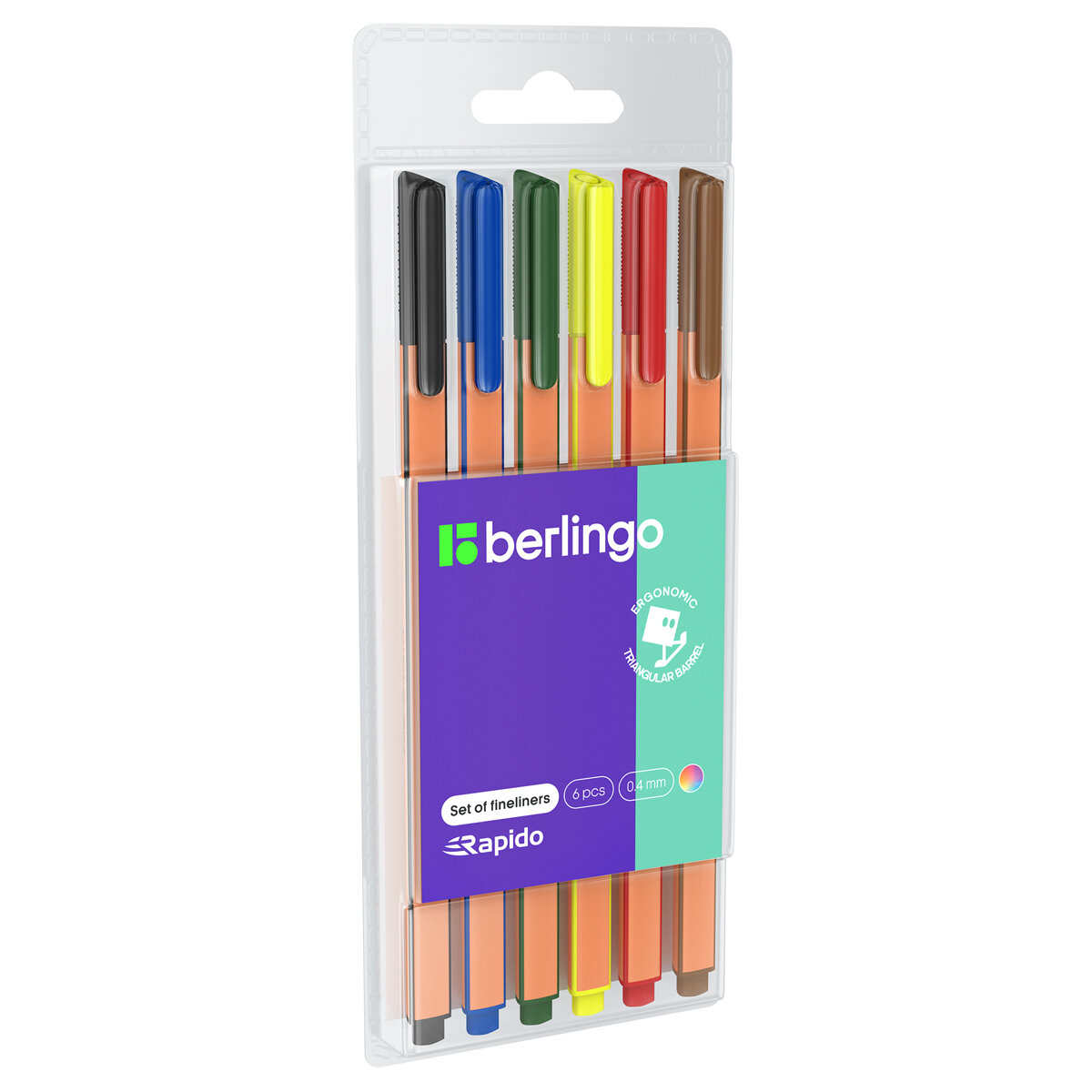 Купить Набор капиллярных ручек Berlingo "Rapido", 6 цв., 0,4 мм, трехгран.