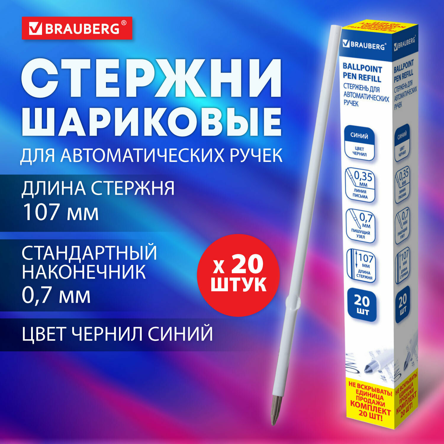 Стержень шариковый BRAUBERG 107мм, с ушками, комплект 20 штук, синий, 0,7мм, линия 0,35мм, 880413 интересное: