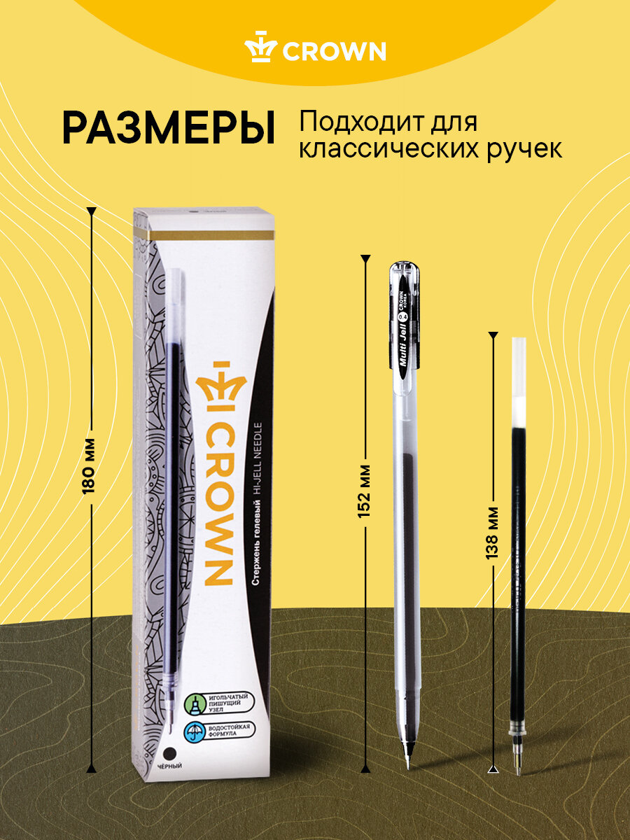 Стержень гелевый Crown "Hi-Jell Needle" черный, 138мм, 0,7мм, игольчатый, 12 шт. в упаковке интересное:
