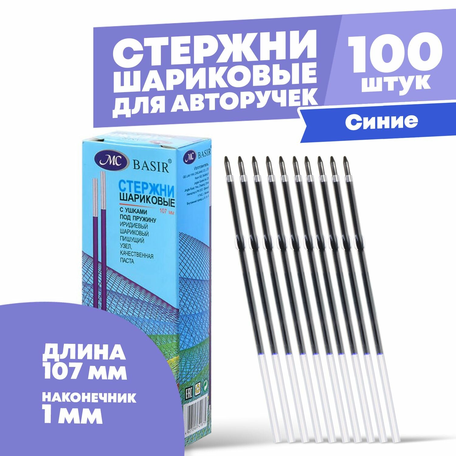 Купить Стержни для автоматической ручки шариковые синие 106 мм, 100 шт, MC-Basir, Набор шариковых стержней с ушками, наконечник 1 мм
