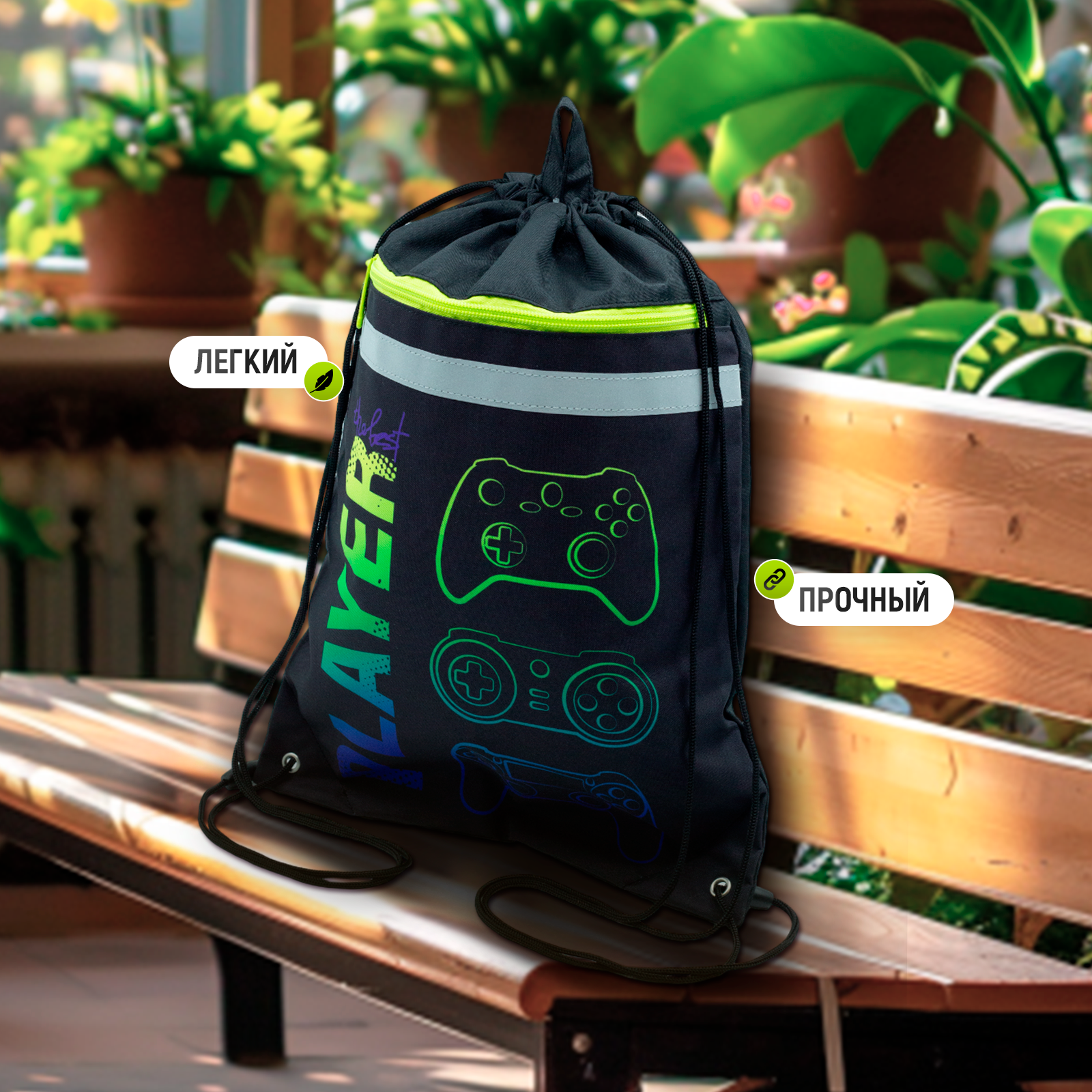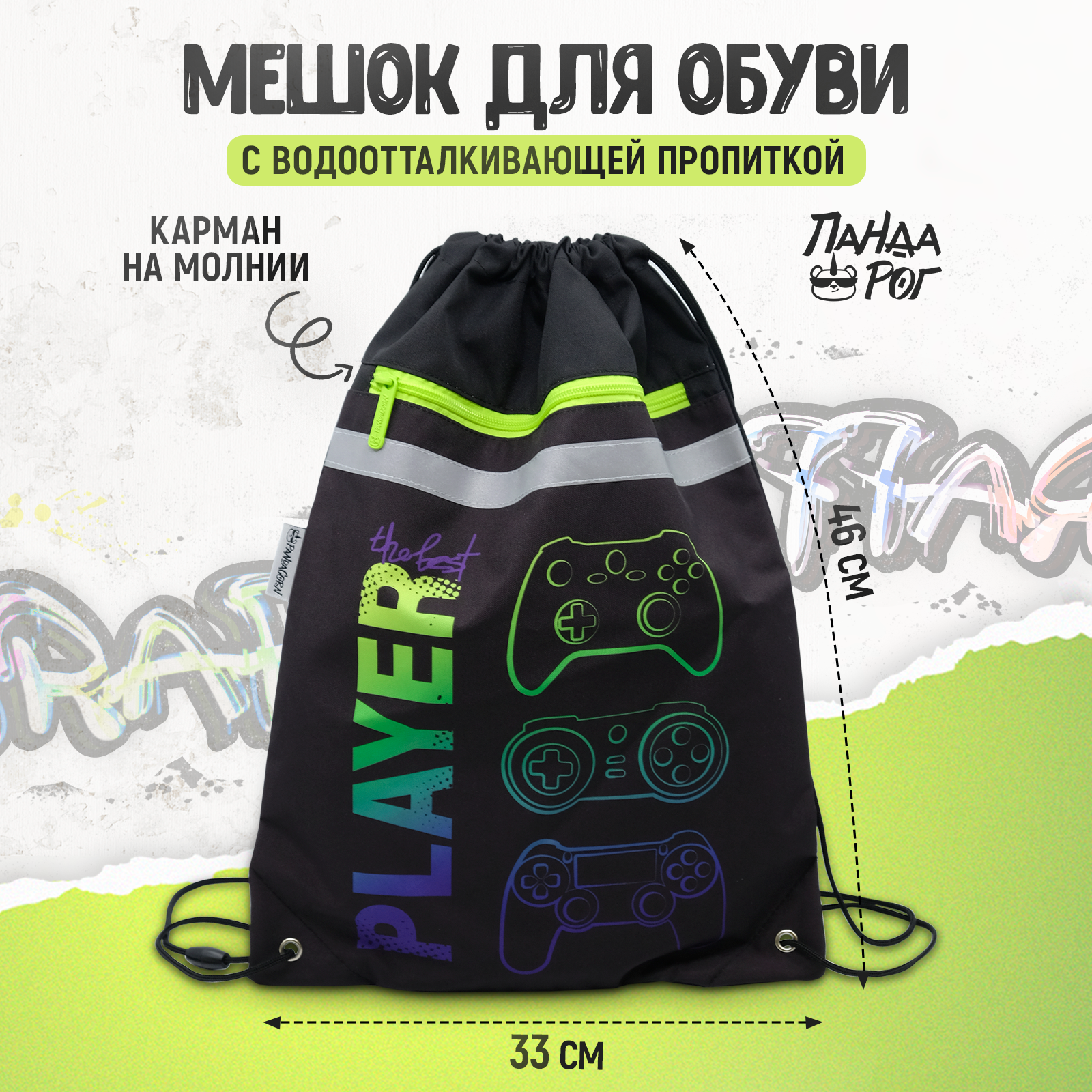 Купить Сумка / мешок / рюкзак для сменной обуви (сменки), карман на молнии с петлей для подвеса 46х33 см , Геймер
