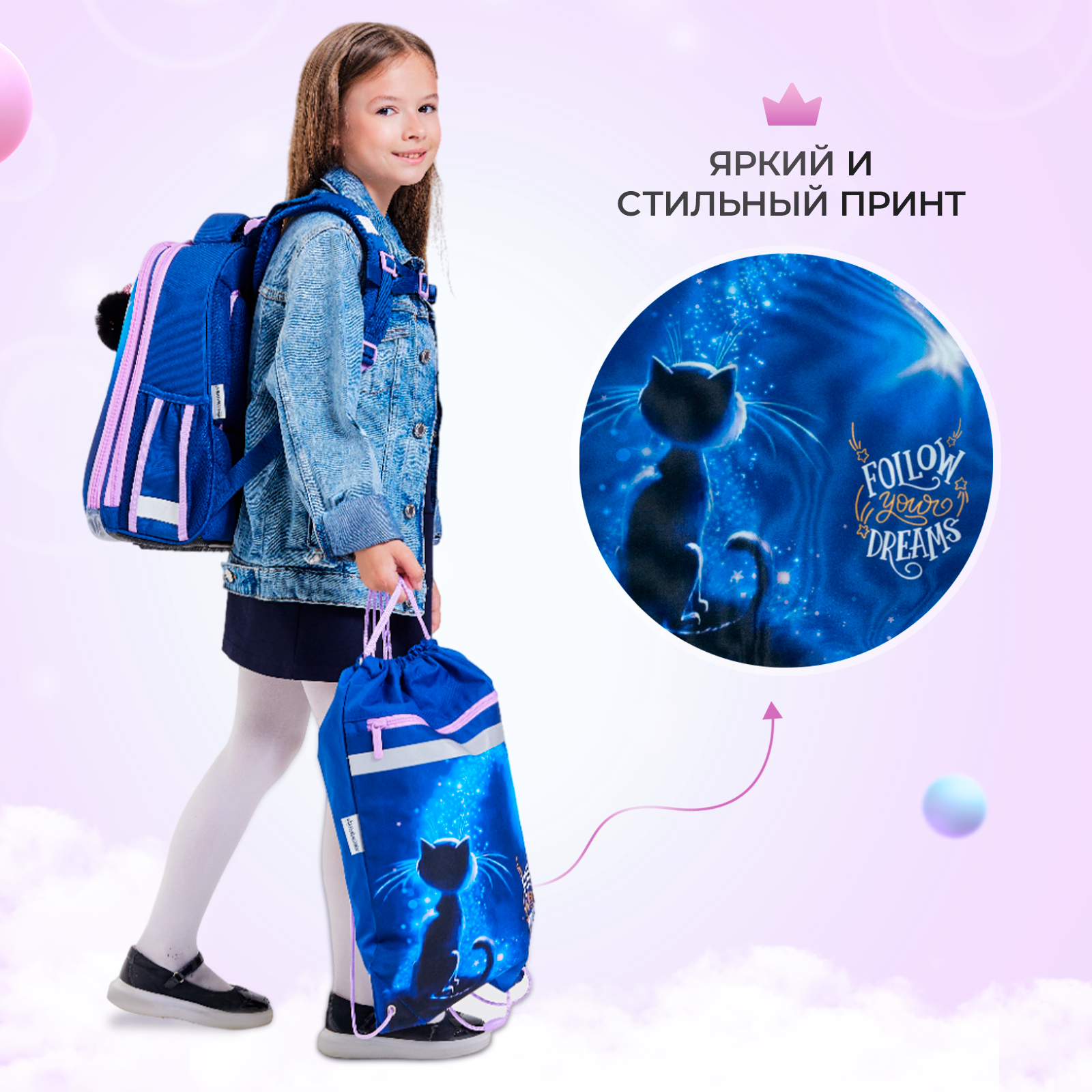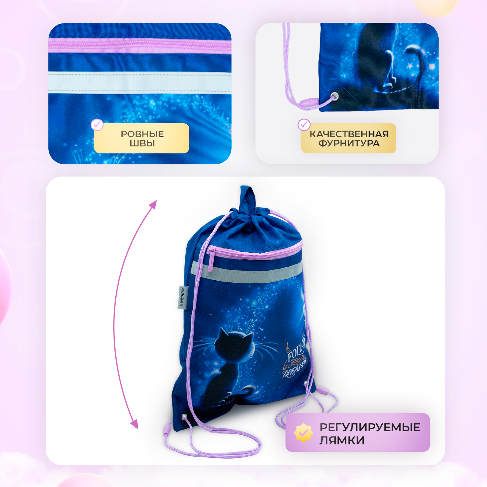 Купить Сумка / мешок / рюкзак для сменной обуви (сменки), с петлей для подвеса 46х33 см с карманом на молнии,Лунный кот