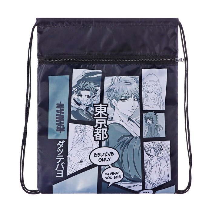 Мешок для обуви с карманом 420 х 340 мм, Calligrata, МСО-7С, (мягкий полиэстер, плотность 210D) "Аниме" интересное: