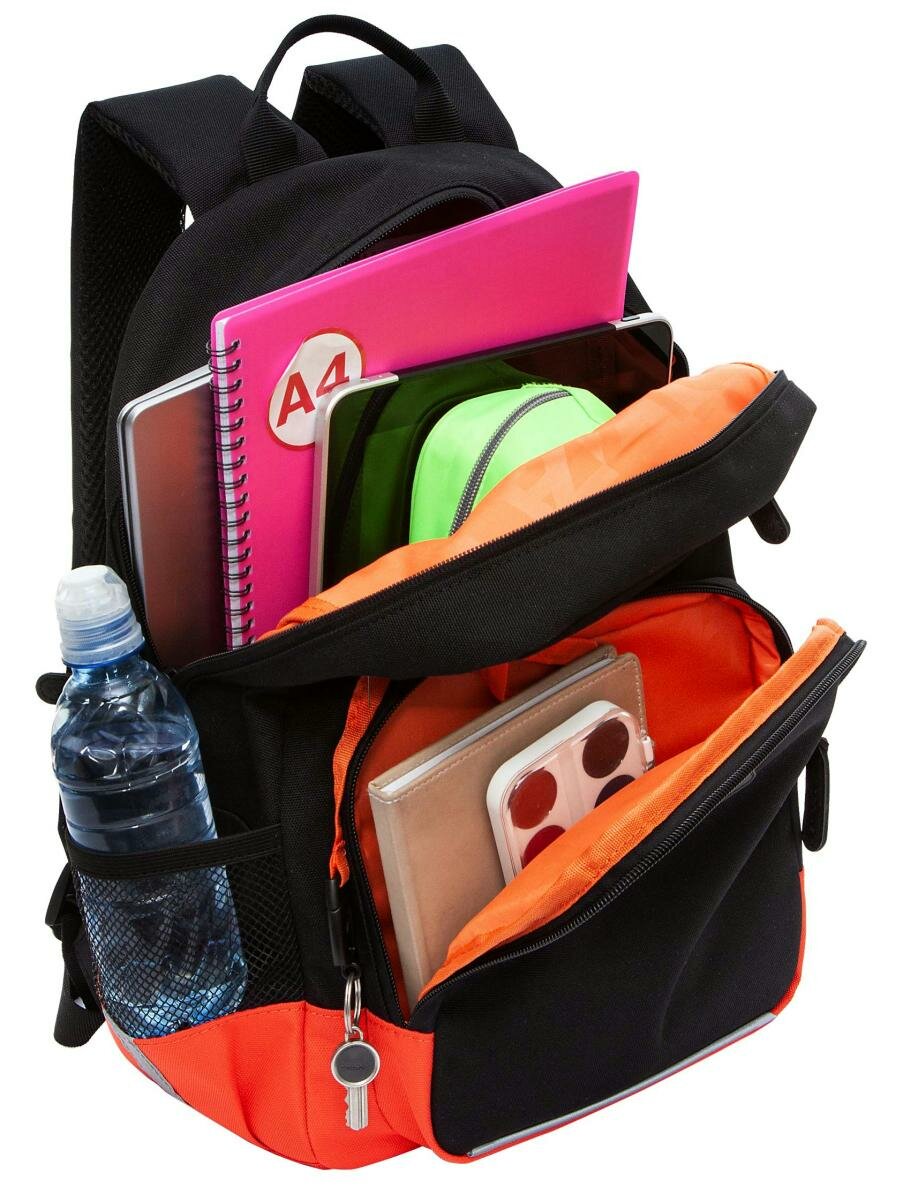 Рюкзак школьный GRIZZLY RB-455-1/2 черный - оранжевый