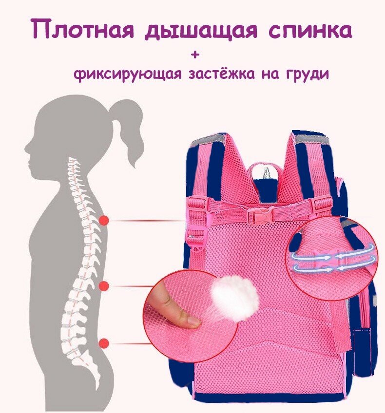 Рюкзак ранец школьный для девочки Unicorn сине-розовый, с Пеналом и Мешком для обуви интересное: