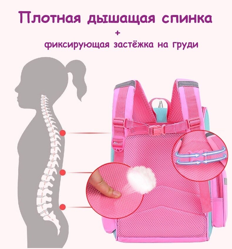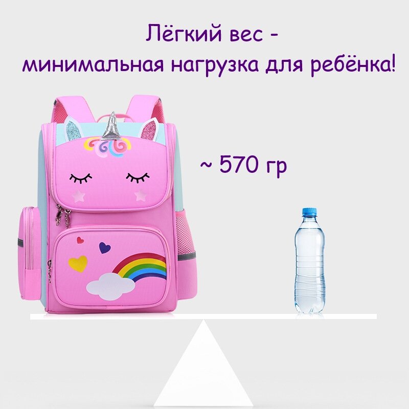 Рюкзак ранец школьный для девочки Unicorn розовый, с Пеналом и Мешком для обуви интересное:
