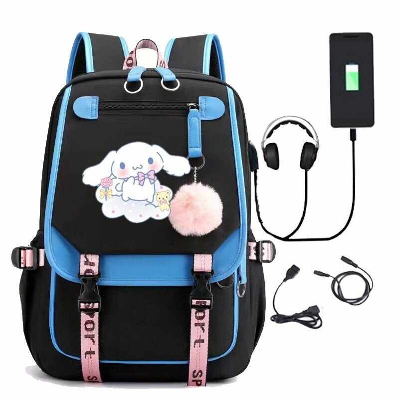 Рюкзак Синнаморолл с пушистым брелком и USB выходом голубой интересное: