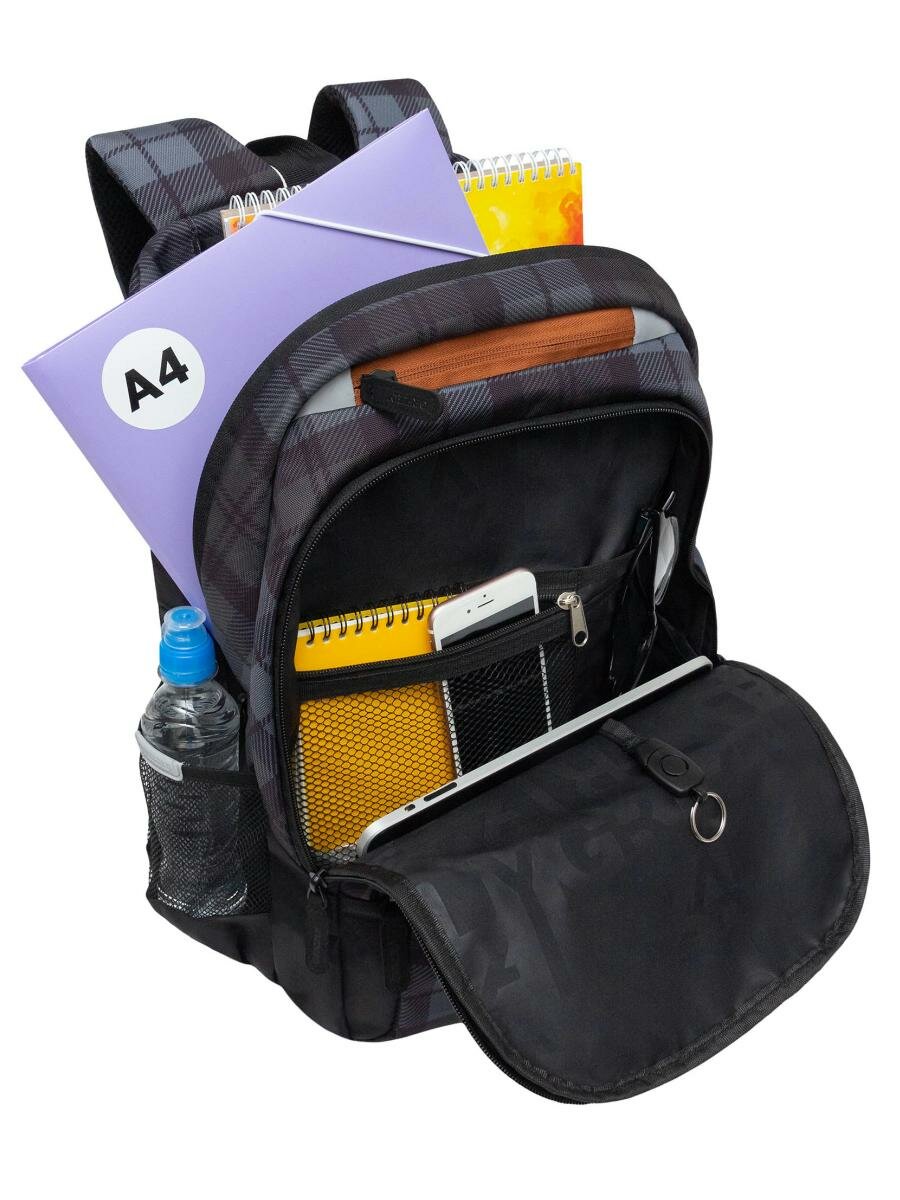 Рюкзак молодёжный 45 х 32 х 23 см, Grizzly, эргономичная спинка, отделение для ноутбука, чёрный