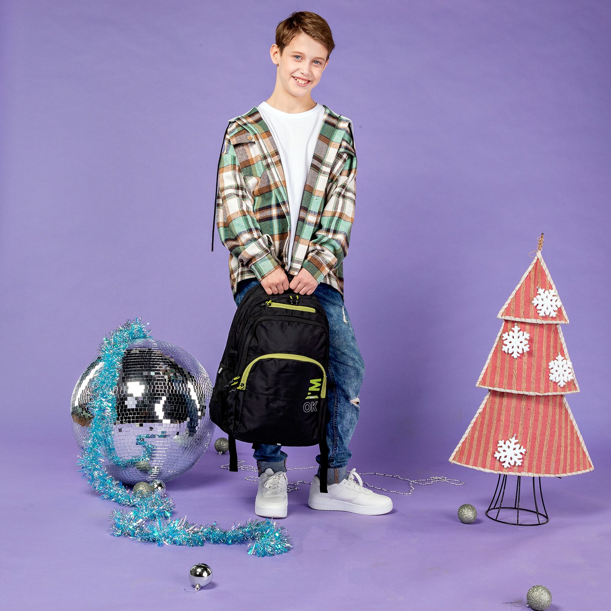 Школьный рюкзак с анатомической спинкой, для мальчика RU-430-10/3, черный-салатовый