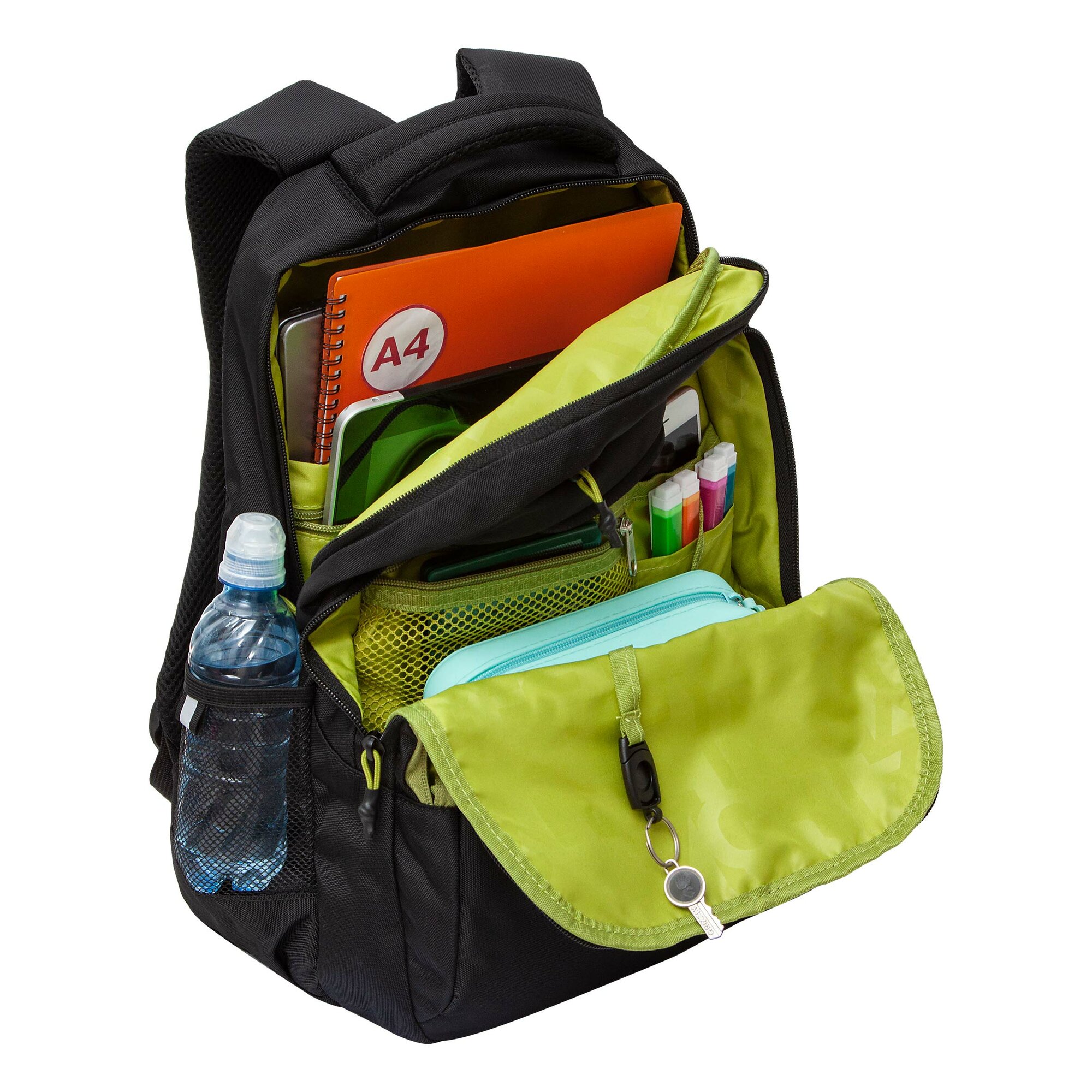 Купить Школьный рюкзак GRIZZLY RU-430-7 черный-салатовый, 32х45х23