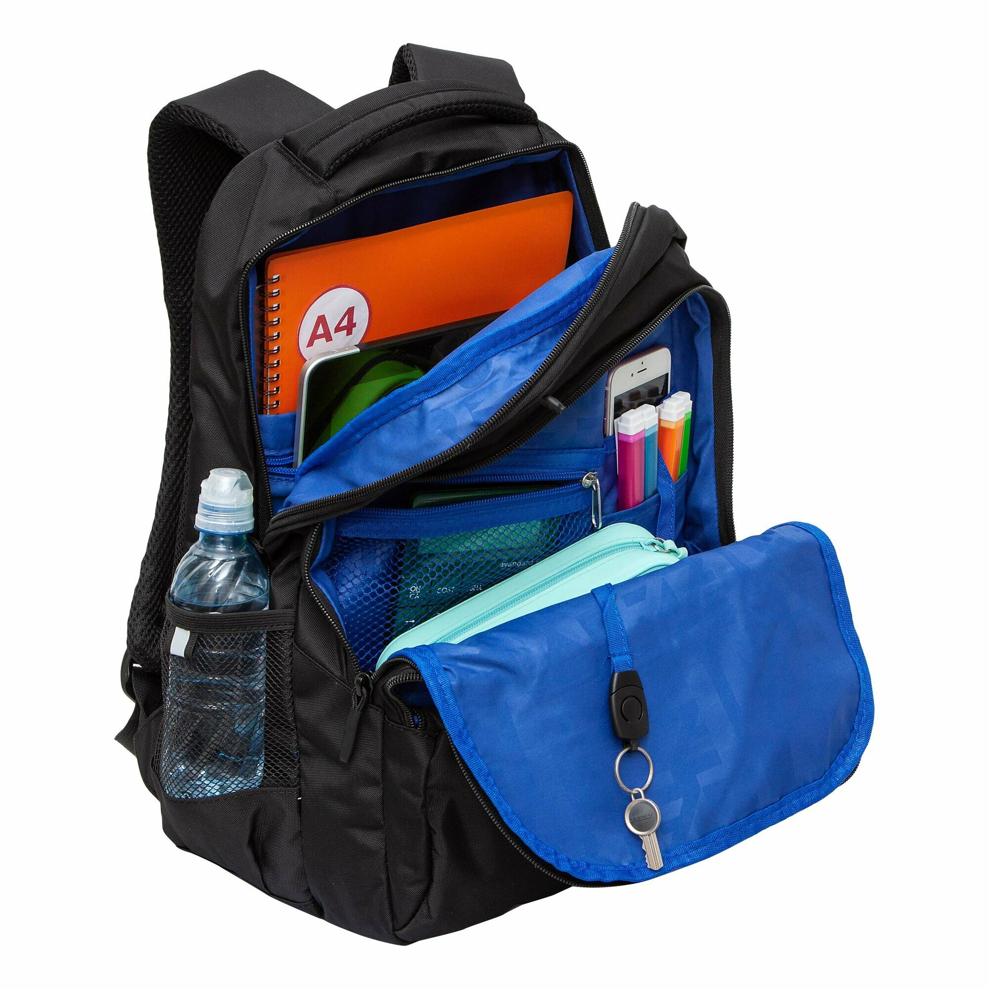 Школьный рюкзак GRIZZLY RU-430-7 черный-синий, 32х45х23