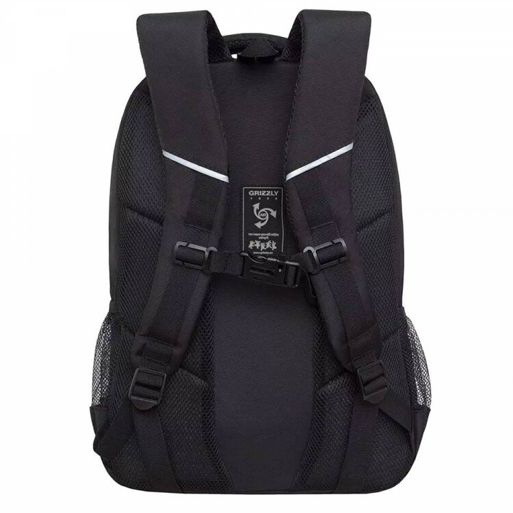 Рюкзак молодёжный 45 х 32 х 23 см, Grizzly "Спорт", эргономичная спинка, отделение для ноутбука, чёрный