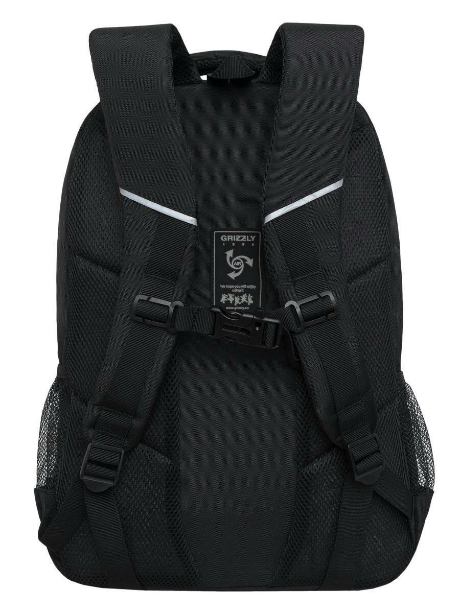 Рюкзак молодёжный 45 х 32 х 23 см, Grizzly, эргономичная спинка, отделение для ноутбука, чёрный