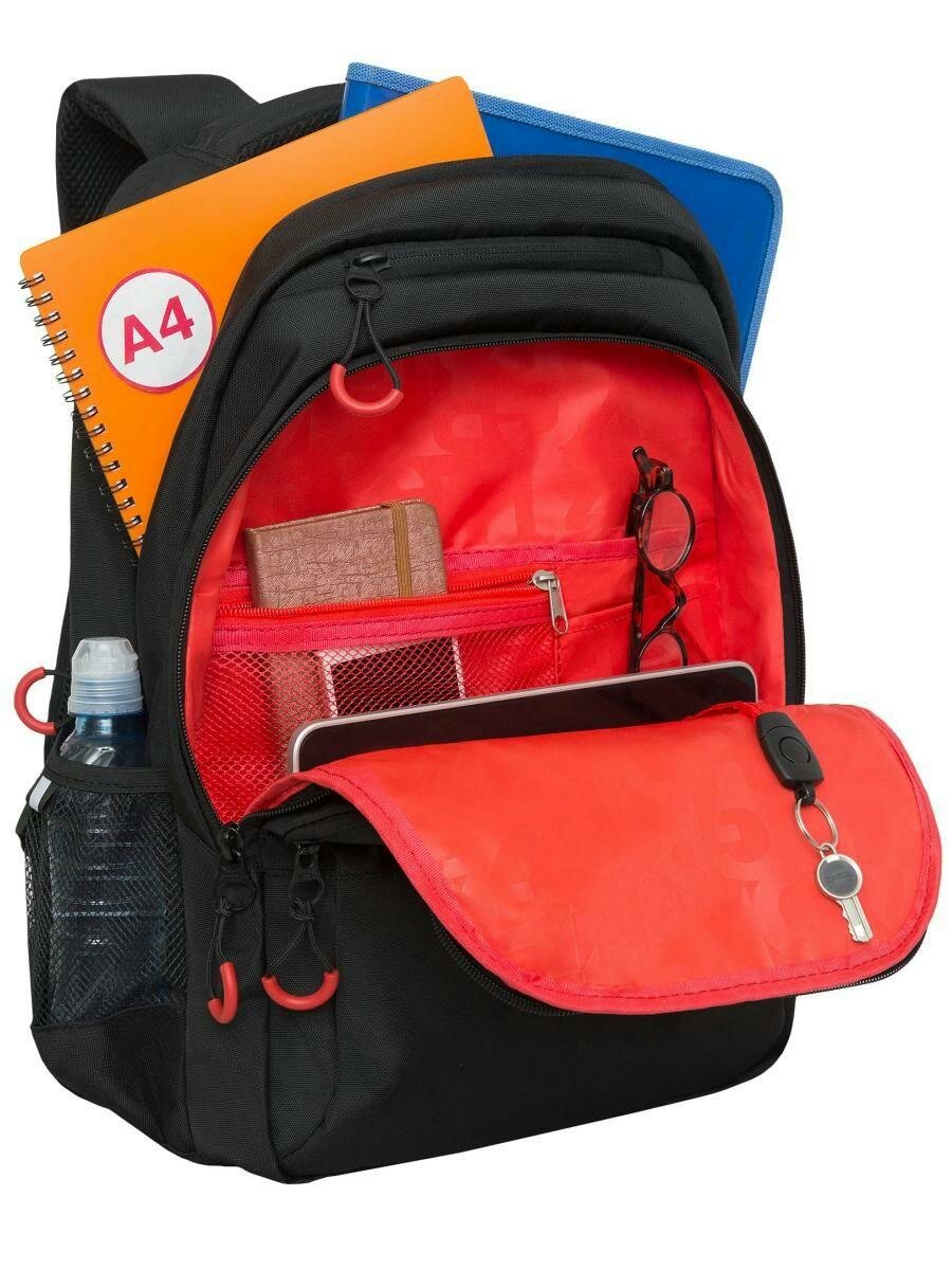 Школьный рюкзак GRIZZLY RU-430-2 черный-красный, 32х45х23