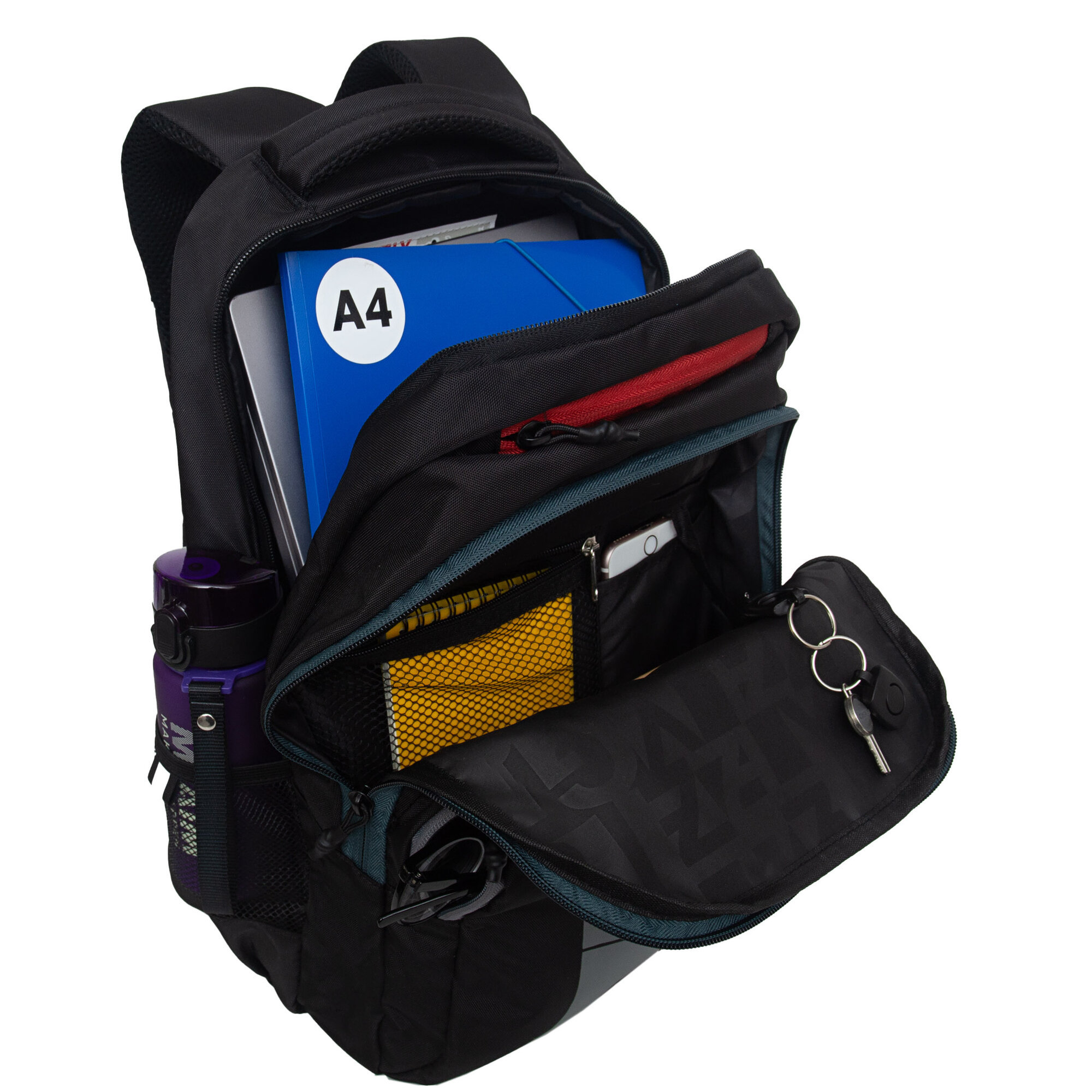 Рюкзак молодёжный 45 х 32 х 23 см, Grizzly "Спорт", эргономичная спинка, отделение для ноутбука, чёрный