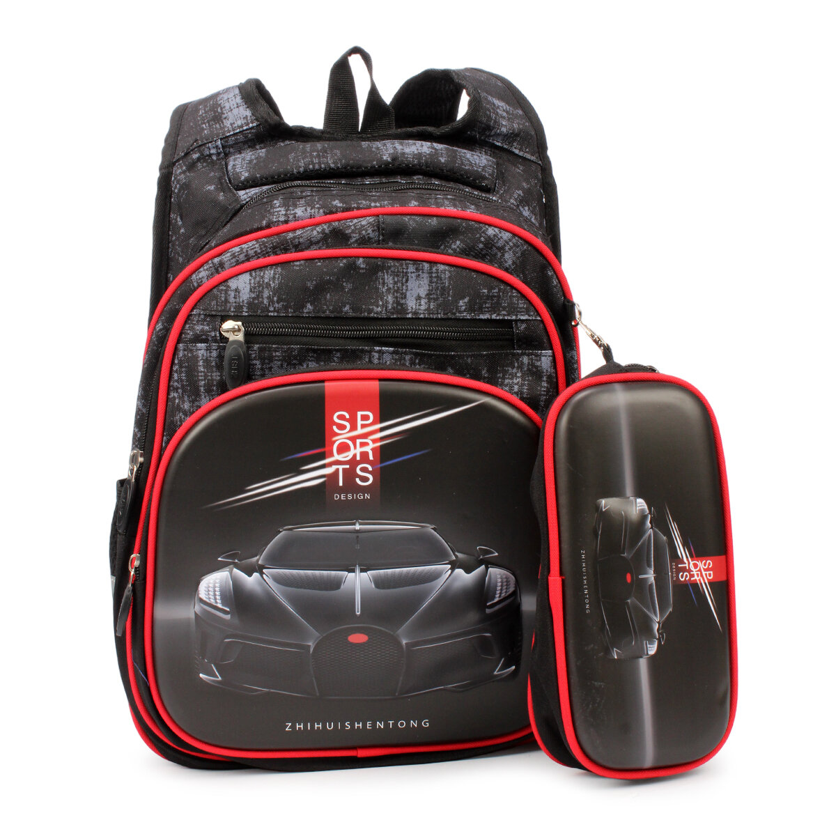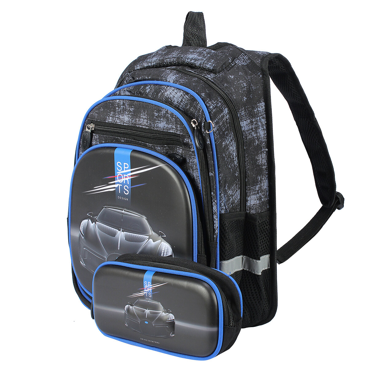 Купить Рюкзак ранец портфель "Автомобиль" школьный 30х11х40 см, 3 отдела + подарок пенал, боковые карманы на резинке, для мальчика, широкие лямки, эргономичная спинка – сетка, цвет микс / 1 шт