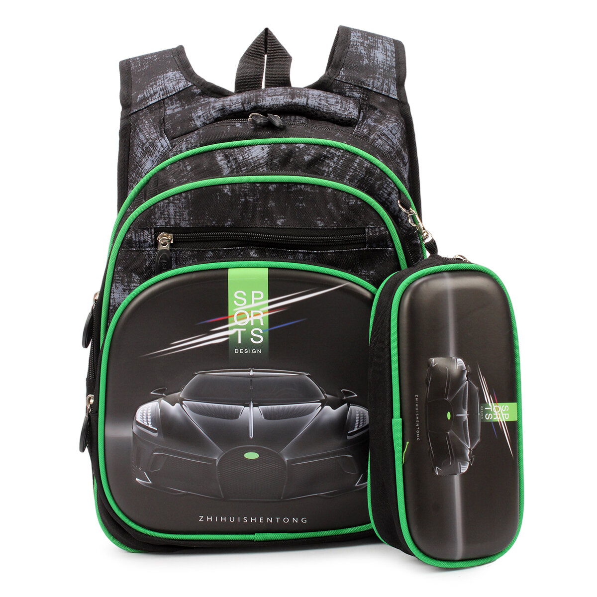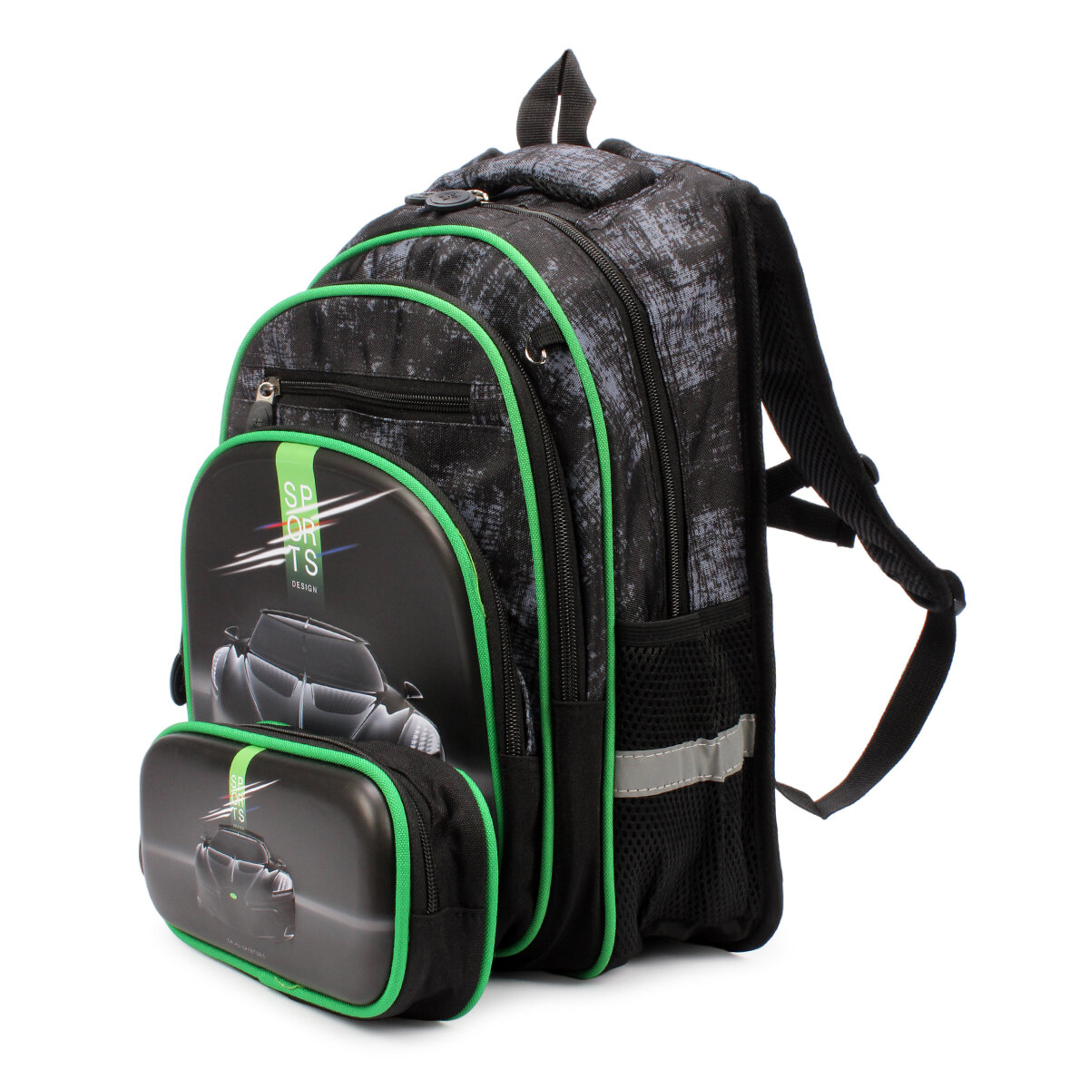 Рюкзак ранец портфель "Автомобиль" 25х14х33 см школьный для первоклассника, 1 отдел, боковые карманы на резинке под клапаном, для мальчика, широкие лямки, эргономичная спинка – сетка, зеленый / 1 шт