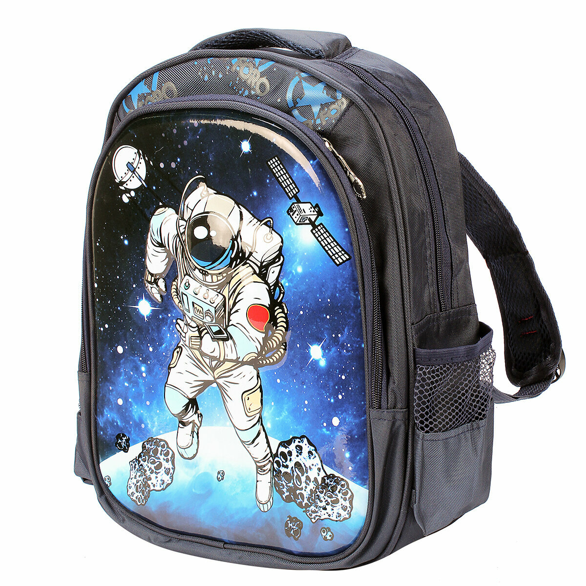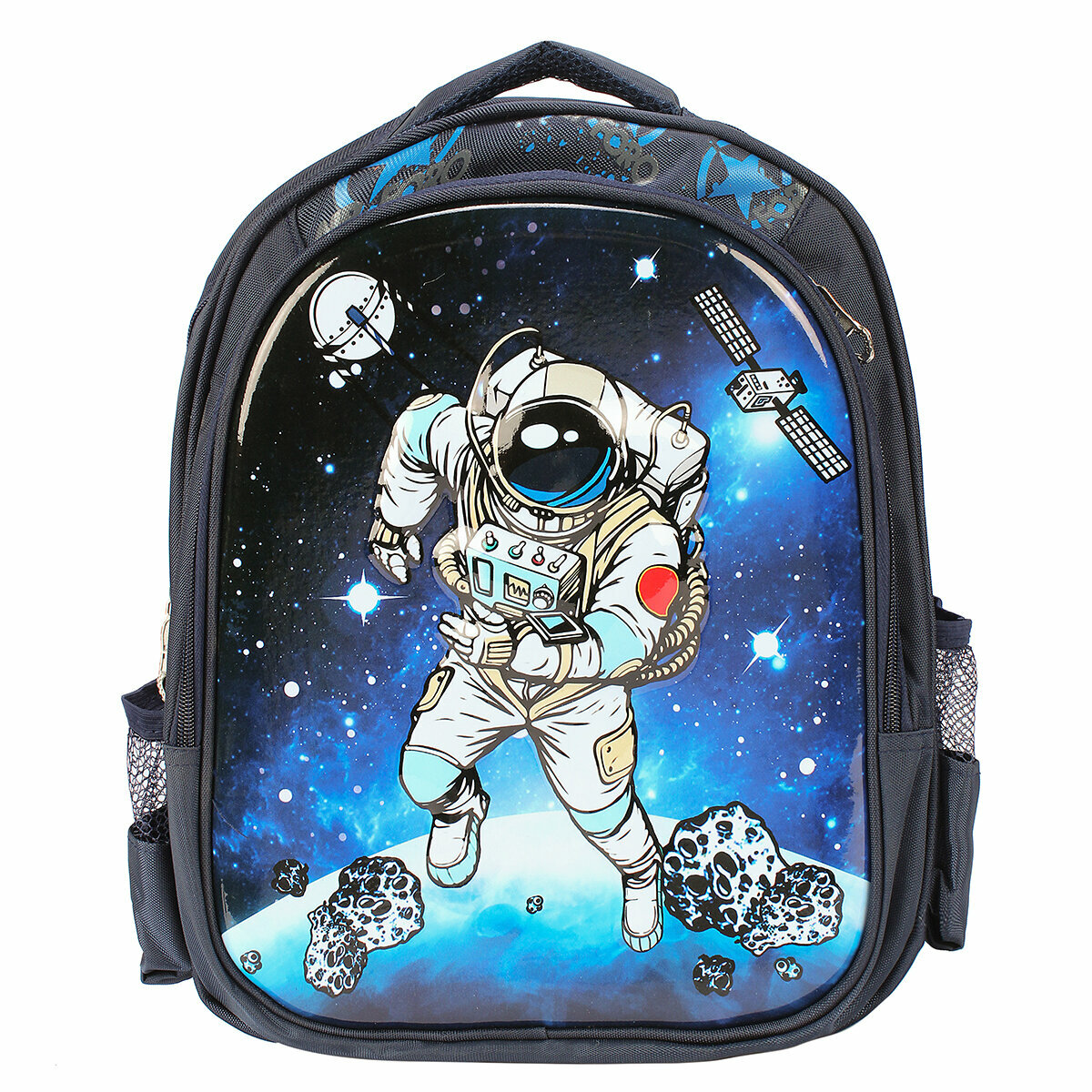 Купить Рюкзак ранец портфель "Космонавт" 29х12х37 см школьный для первоклассника, 2 отдела, боковые карманы на резинке, для девочки для мальчика, широкие лямки, эргономичная спинка – сетка, цвет синий / 1 шт