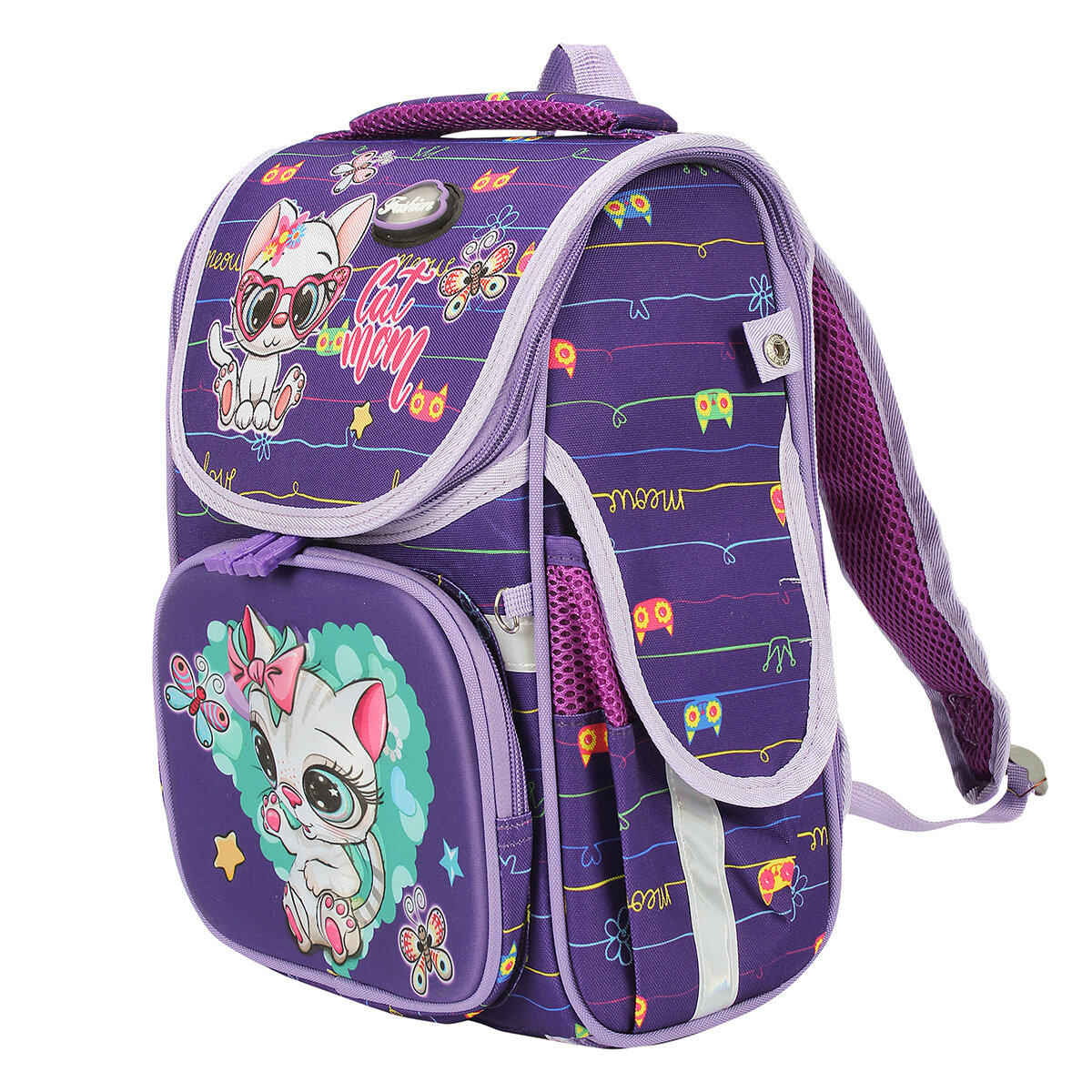 Купить Рюкзак ранец портфель "Ученик зверек" 25х14х33 см школьный для первоклассника, 1 отдел, боковые карманы на резинке под клапаном, для девочки, широкие лямки, эргономичная спинка – сетка, цвет микс / 1 шт